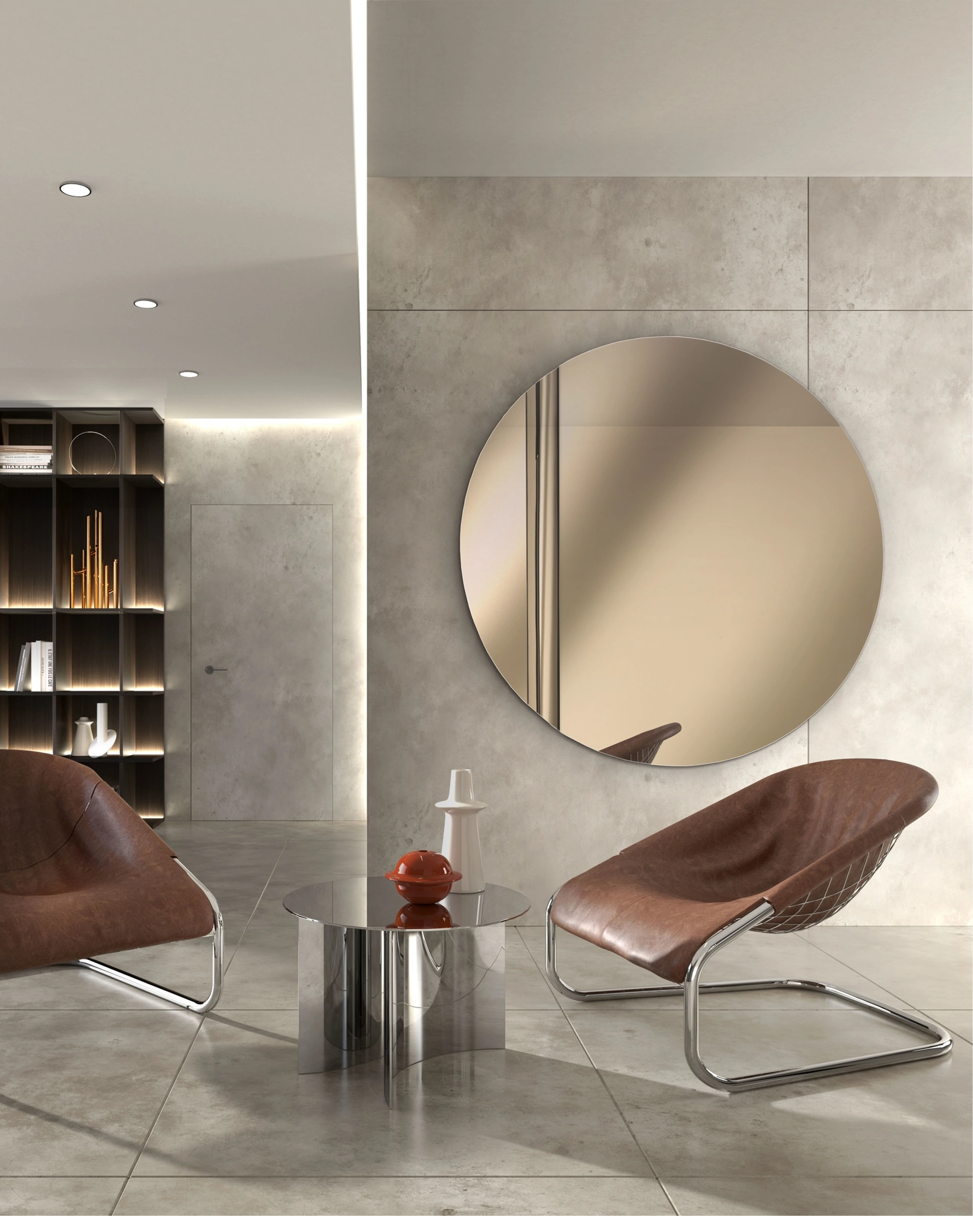 Complementi design e specchi senza cornice: scopri di più sul modello Specchio Coin di Stones e potrai impreziosire i tuoi locali.