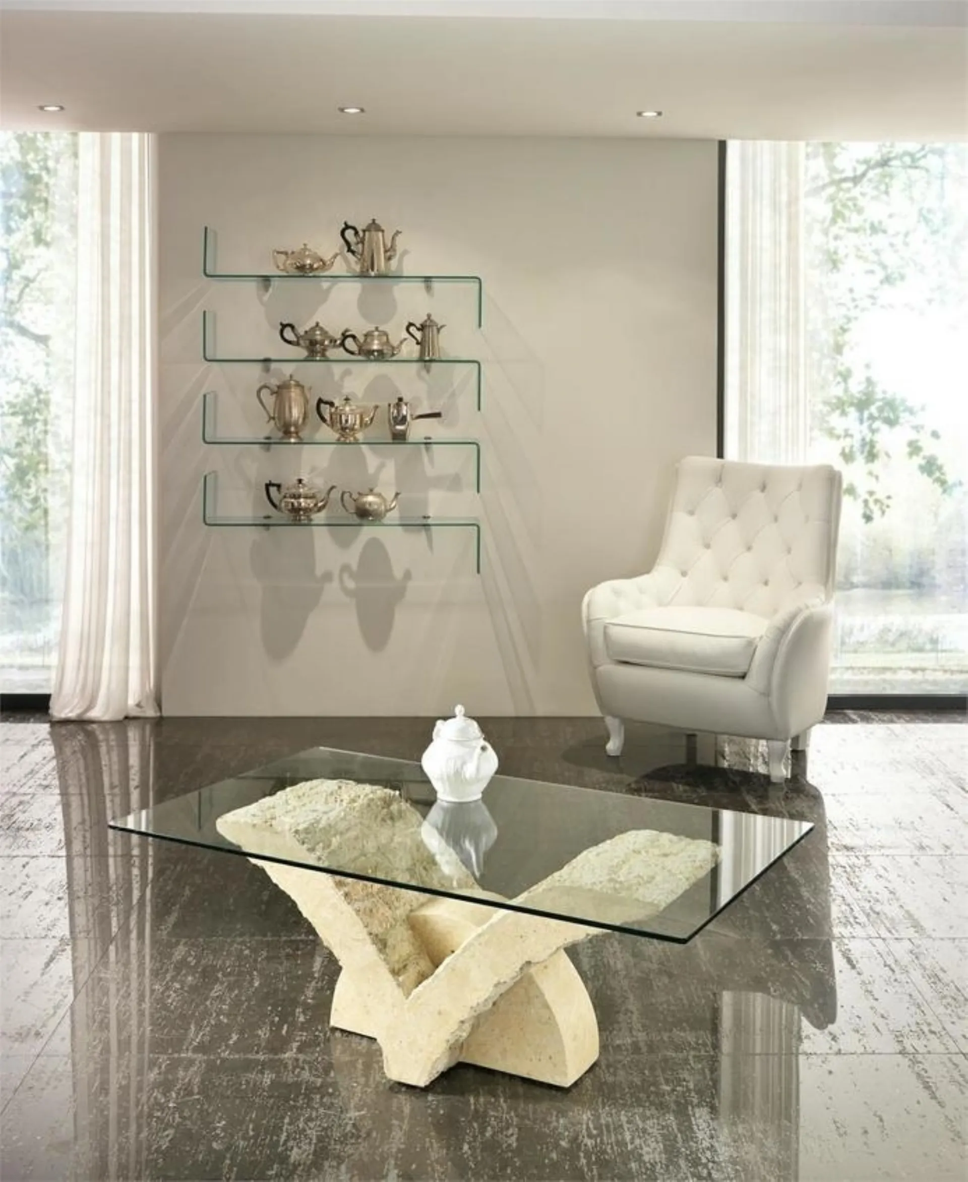 Desideri valorizzare i tuoi locali con i Complementi Stones? Ecco qui differenti modelli di tavolini in vetro come Tavolino Papillon.