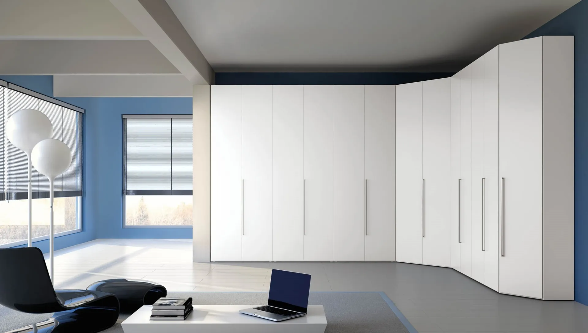 Cerchi un armadio in laccato opaco? Clicca e scopri armadi ad angolo con ante battenti di Ferrimobili.