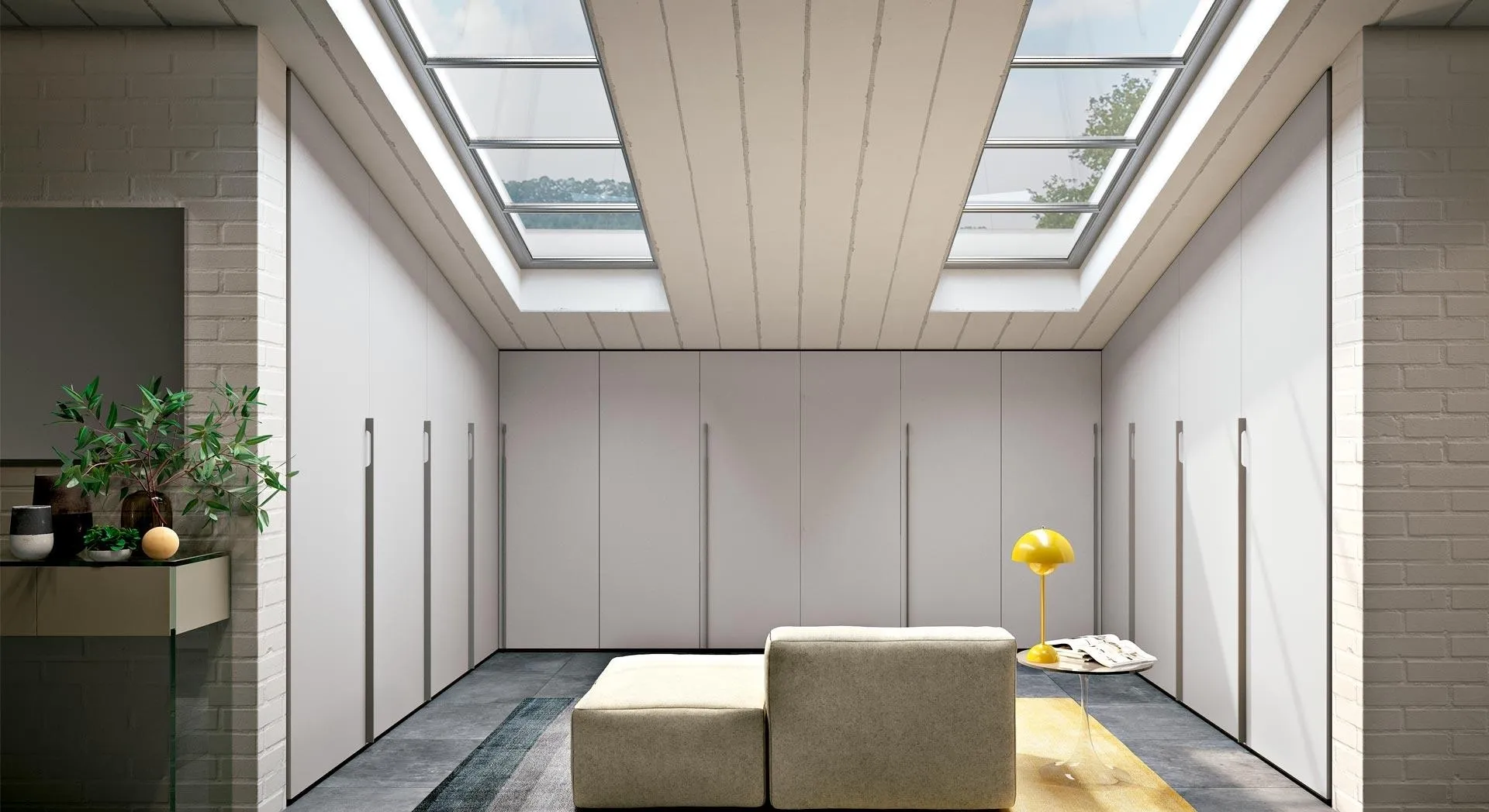 Per arredare ottimamente una stanza bella e funzionale, prediligi le più belle soluzioni dei migliori brand, letti, armadi e comodini di grande design. Gli Armadi per mansarde con ante battenti sono componenti essenziali nella camera da letto, per renderla arredata con gusto, pratica e completa di tutto. Contattaci e ottieni informazioni sulla nostra collezione di Arredamento Casa: potrai ultimare la zona notte usufruendo di una diversificata varietà di mobili contenitori design, come l'armadio in laccato opaco in foto. Armadio mansardato Composizione 04 di Ferrimobili: compila il form per ricevere info di ogni tipo e consigli per arredare la camera che hai sempre voluto.