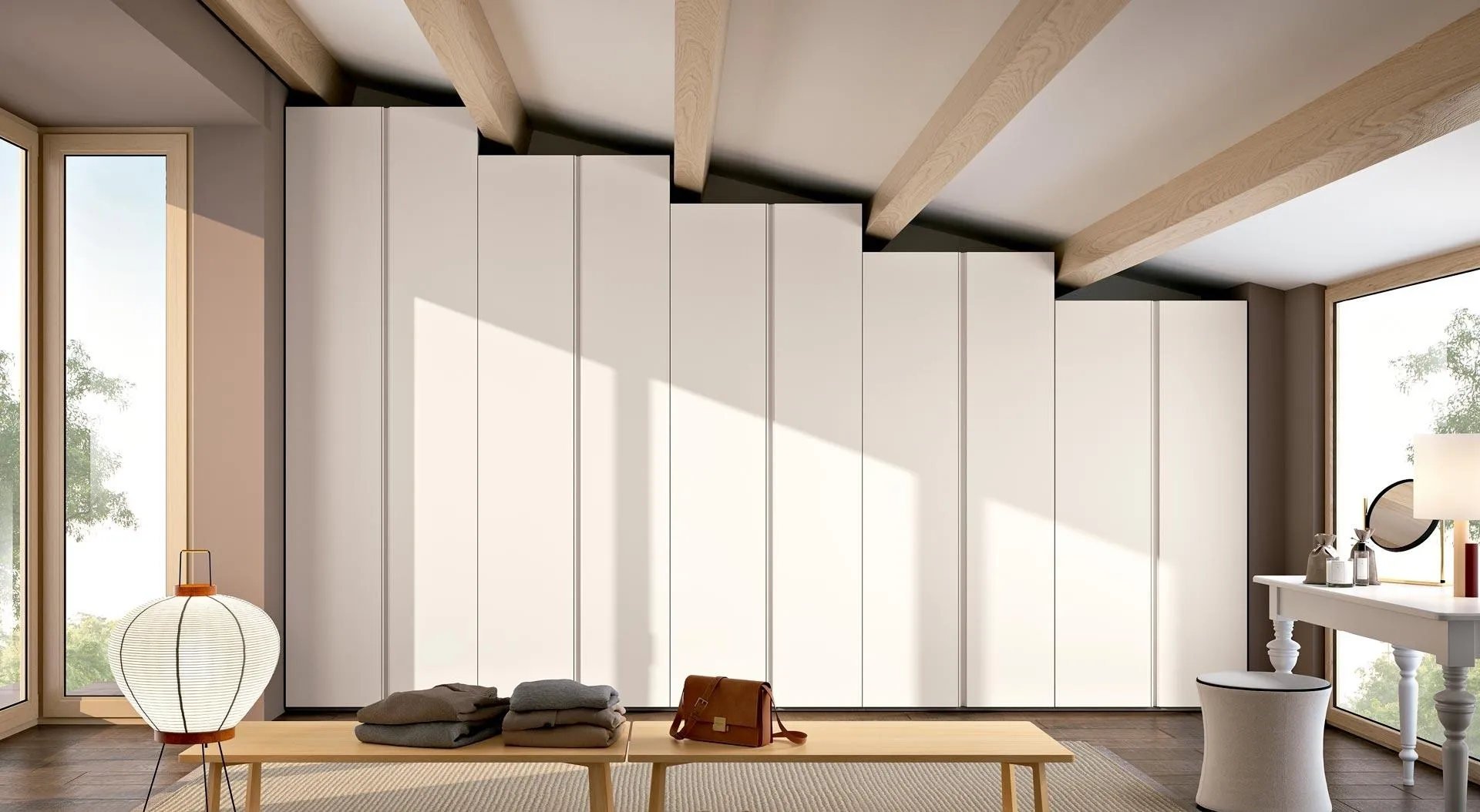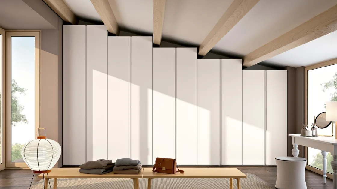 Se sei alla ricerca di armadi per mansarde con ante battenti, clicca e scopri l'armadio Composizione 24 di Ferrimobili in laccato opaco.