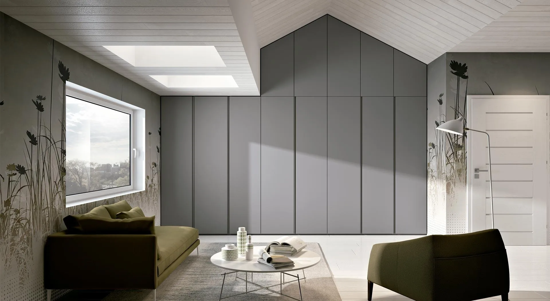Se desideri armadiature per mansarde con ante battenti, clicca e scopri l'armadio Composizione 27 di Ferrimobili in laccato opaco.