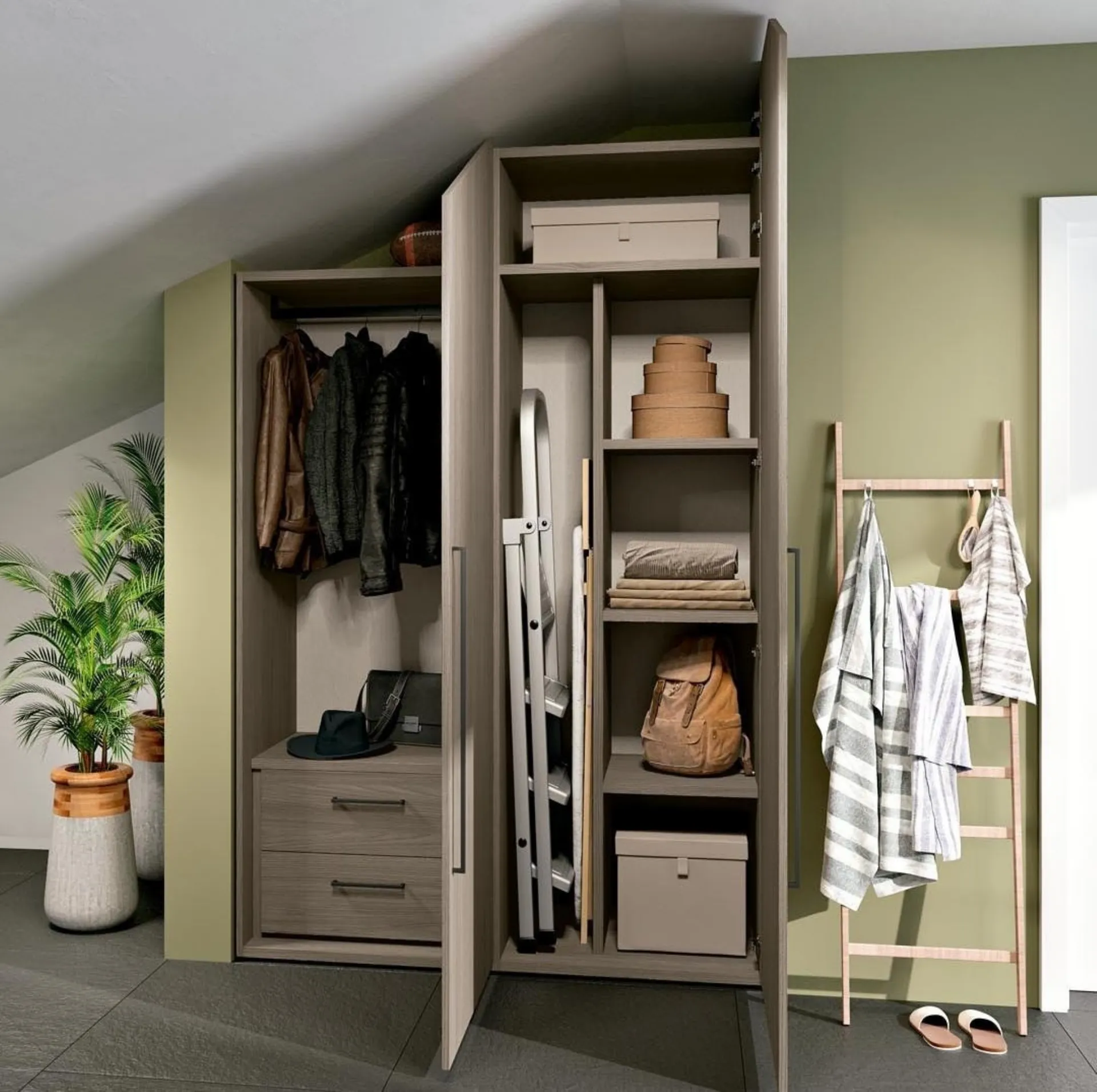 In negozio ti aspettano le più interessanti proposte di Arredamento Casa, comò e comodini sul mercato, vari per eleganza, dimensione e tonalità per ultimare al meglio una camera bella e funzionale. Questo guardaroba è ideale per essere inserito in un ambiente arredato con mobili e oggetti accessori moderni, mixando al meglio praticità e design. La apprezzata firma Ferrimobili annovera una ampia produzione di Armadi su misura con ante battenti, caratterizzati da disegno esclusivo e praticità necessaria. Per selezionare idee nel completare l’arredamento, vieni da noi e scopri una ricca gamma di mobili e oggetti accessori tra cui questo guardaroba esclusivo e poliedrico. Armadio ripostiglio Composizione 43 di Ferrimobili: compila il form per info e preventivi e arreda la camera da letto come l'hai sempre immaginata.