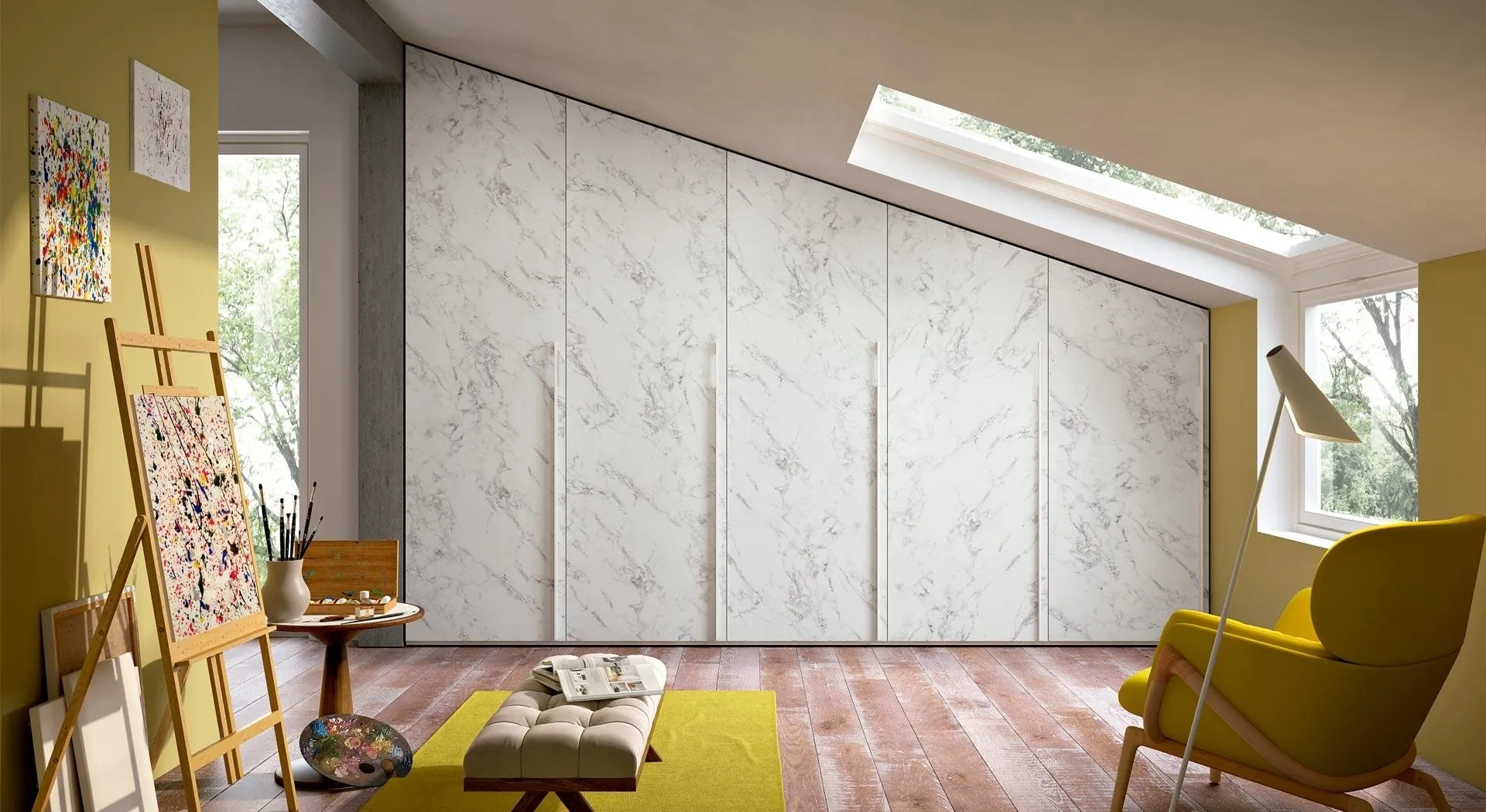 Cerchi un guardaroba in materico? Clicca e scopri armadi per mansarde con ante battenti di Ferrimobili.