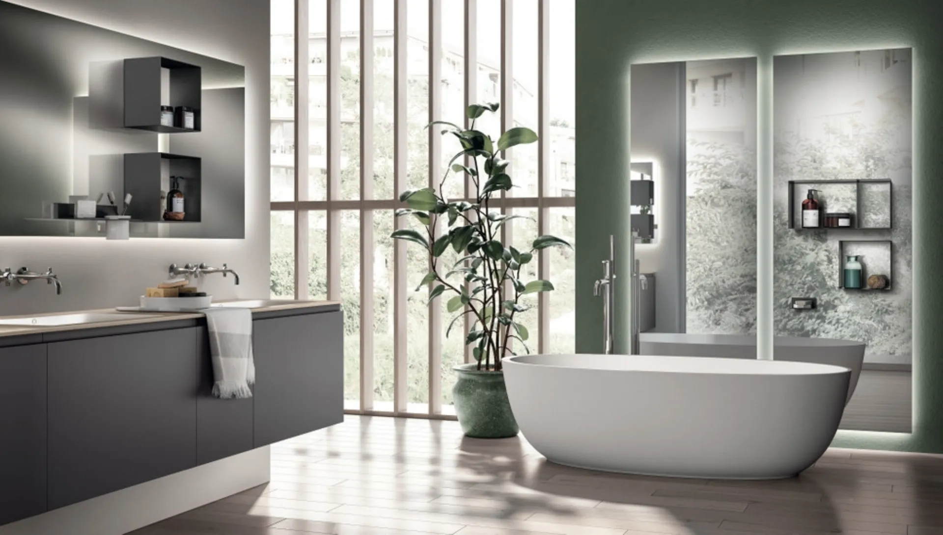 Mobile da Bagno Juno Grigio di Scavolini Bathrooms: clicca e scopri di più su mobili bagno sospesi in laccato opaco e elementi accessori dell'azienda.