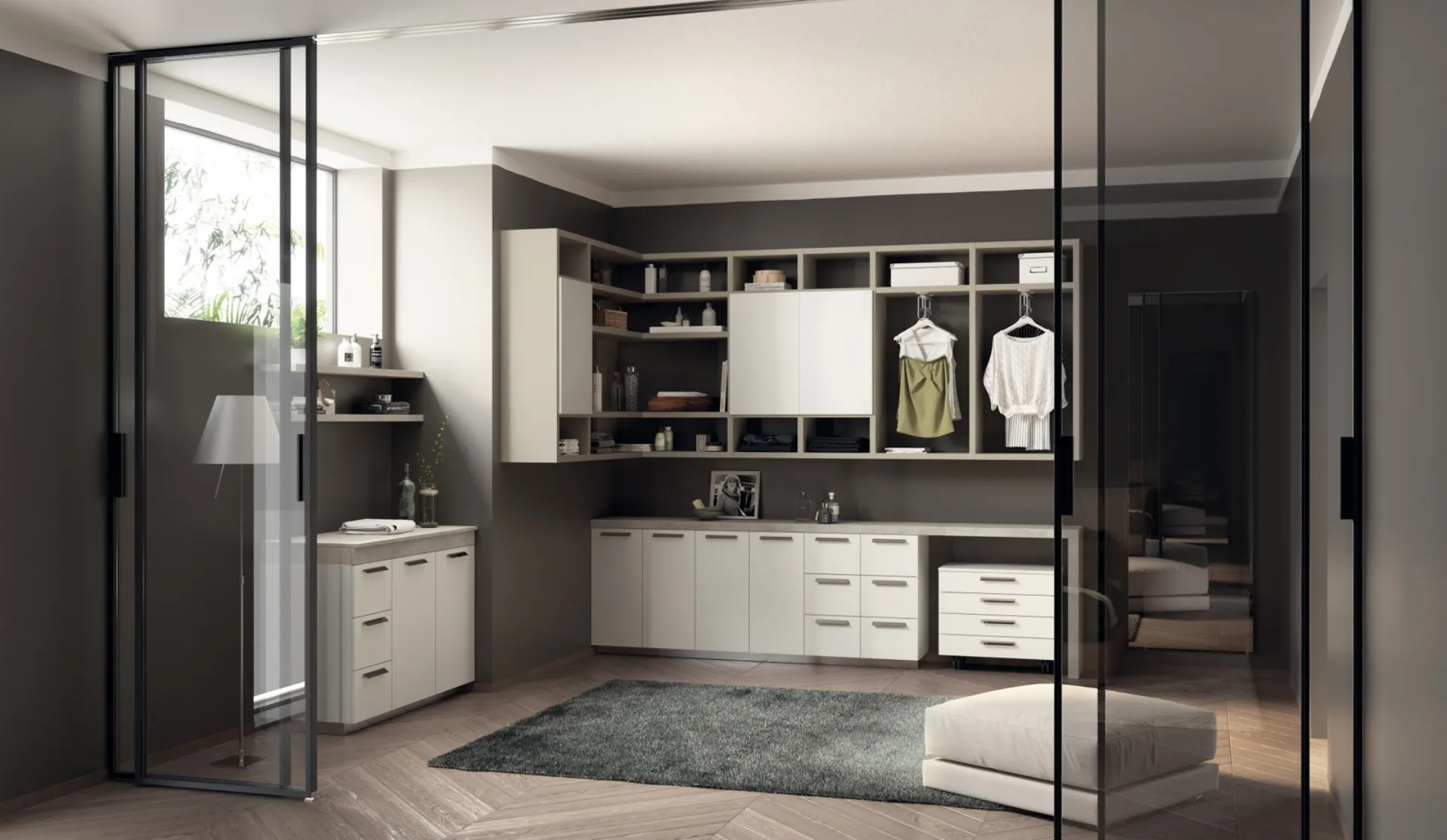 Arreda il tuo bagno moderno perfettamente con Laundry Space Aquo Decorativo Bianco, mobili bagno per lavanderia e complementi in melaminico di Scavolini Bathrooms.