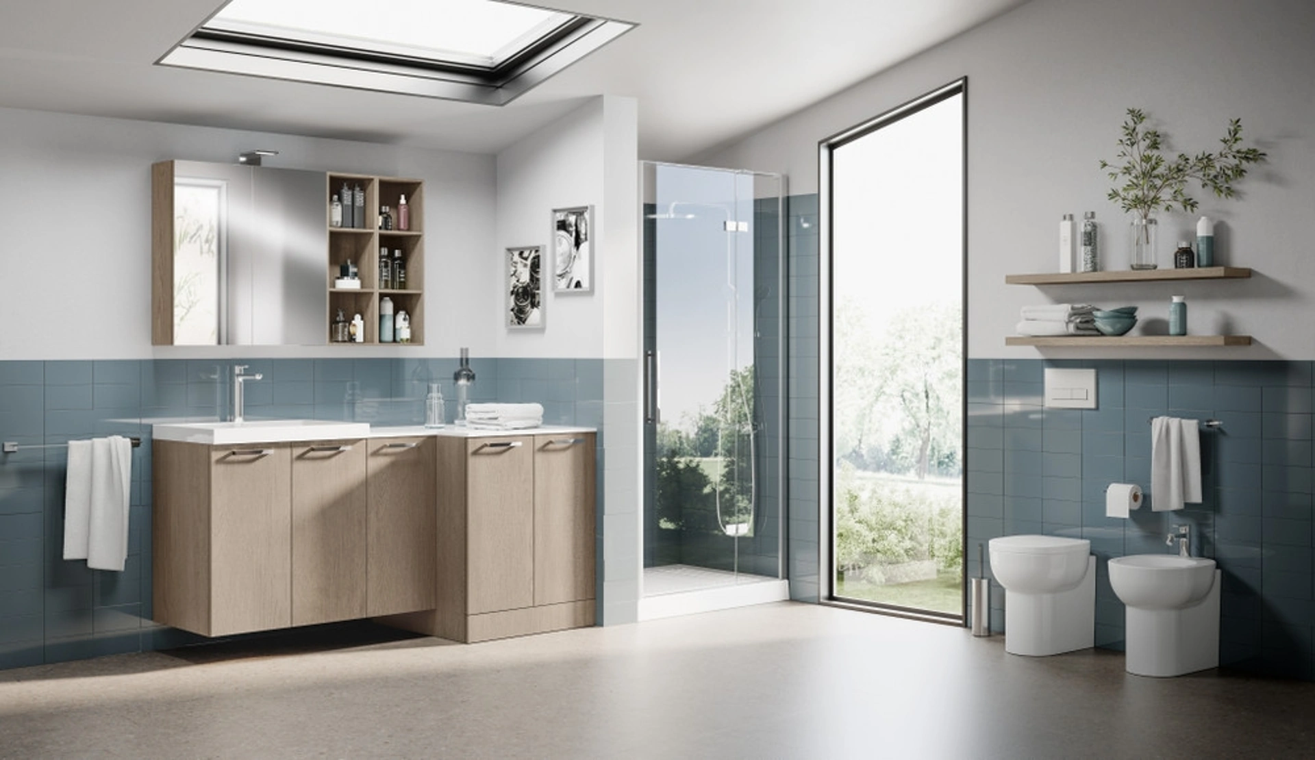 mobili bagno per lavanderia in melaminico dell'azienda Scavolini Bathrooms: clicca e scopri l'arredo bagno moderno Laundry Space Aquo Rovere per la stanza del benessere.