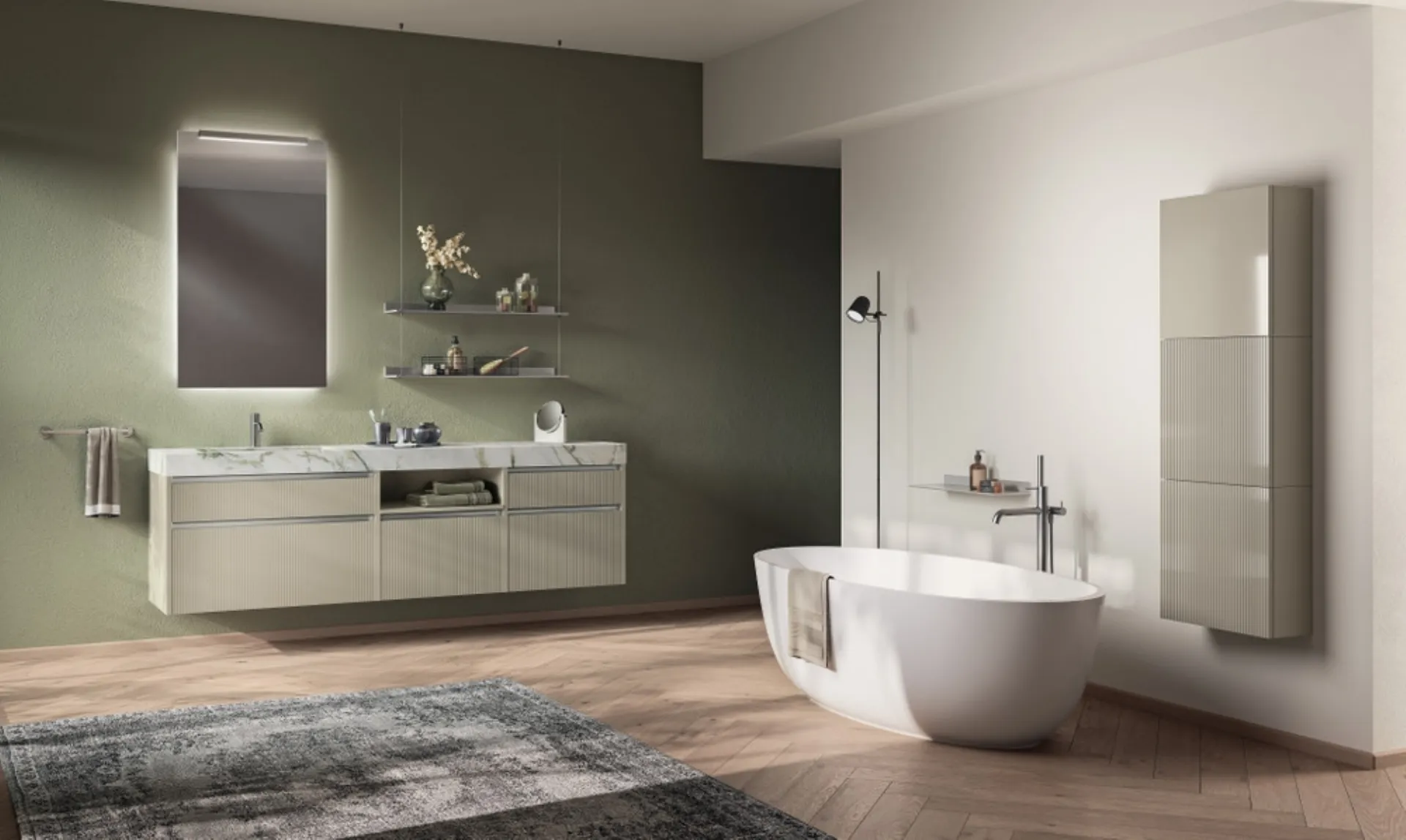 Mobili bagno sospesi Miko laccato Opaco Tortora di Scavolini Bathrooms: scopri l'Arredo Bagno in laccato opaco moderno e arreda il tuo bagno.
