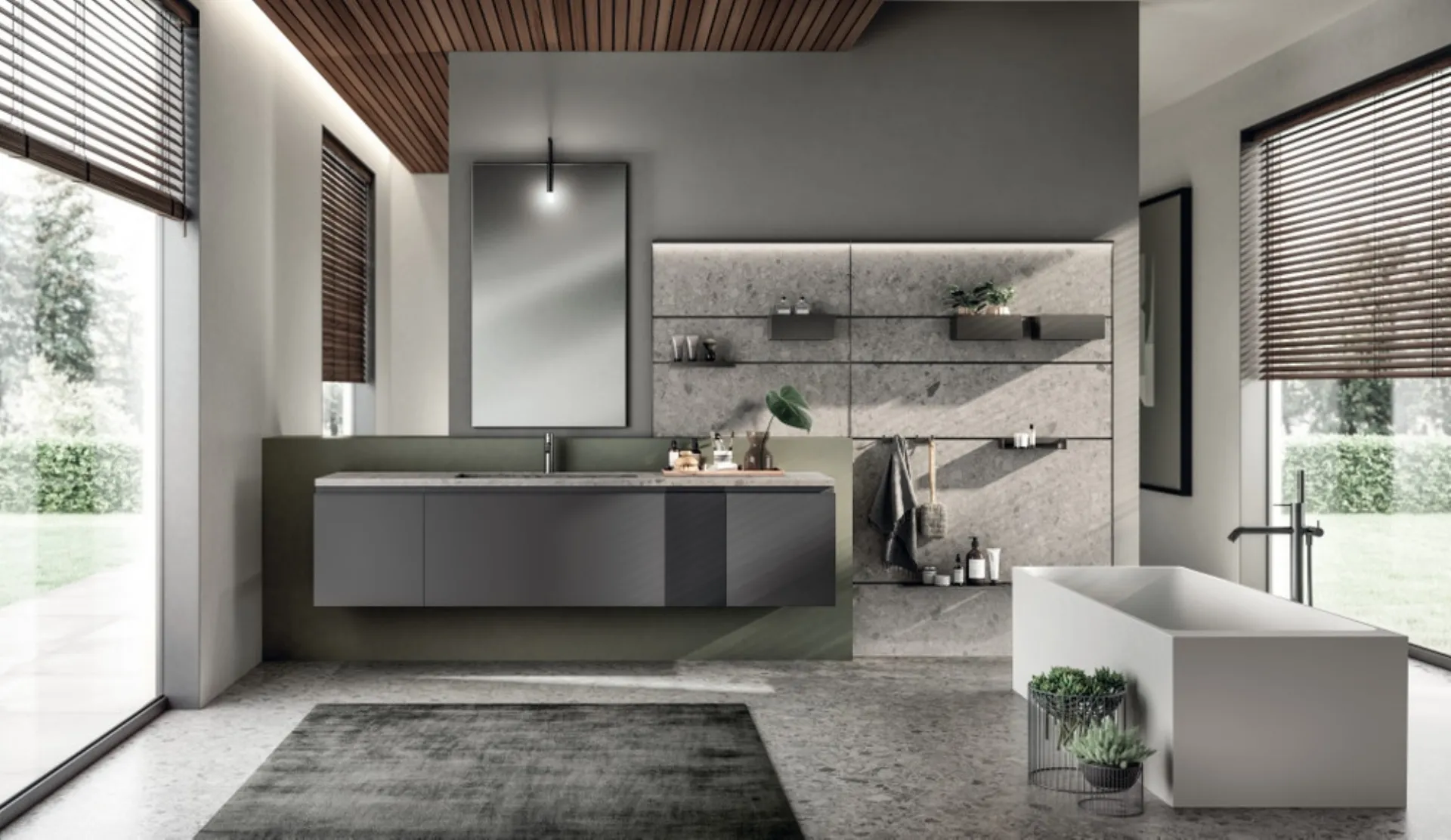 Scopri di più sull'arredo bagno moderno: mobili bagno sospesi in laccato opaco come il modello Tratto Laccato Opaco Grigio Ferro di Scavolini Bathrooms ti attendono.