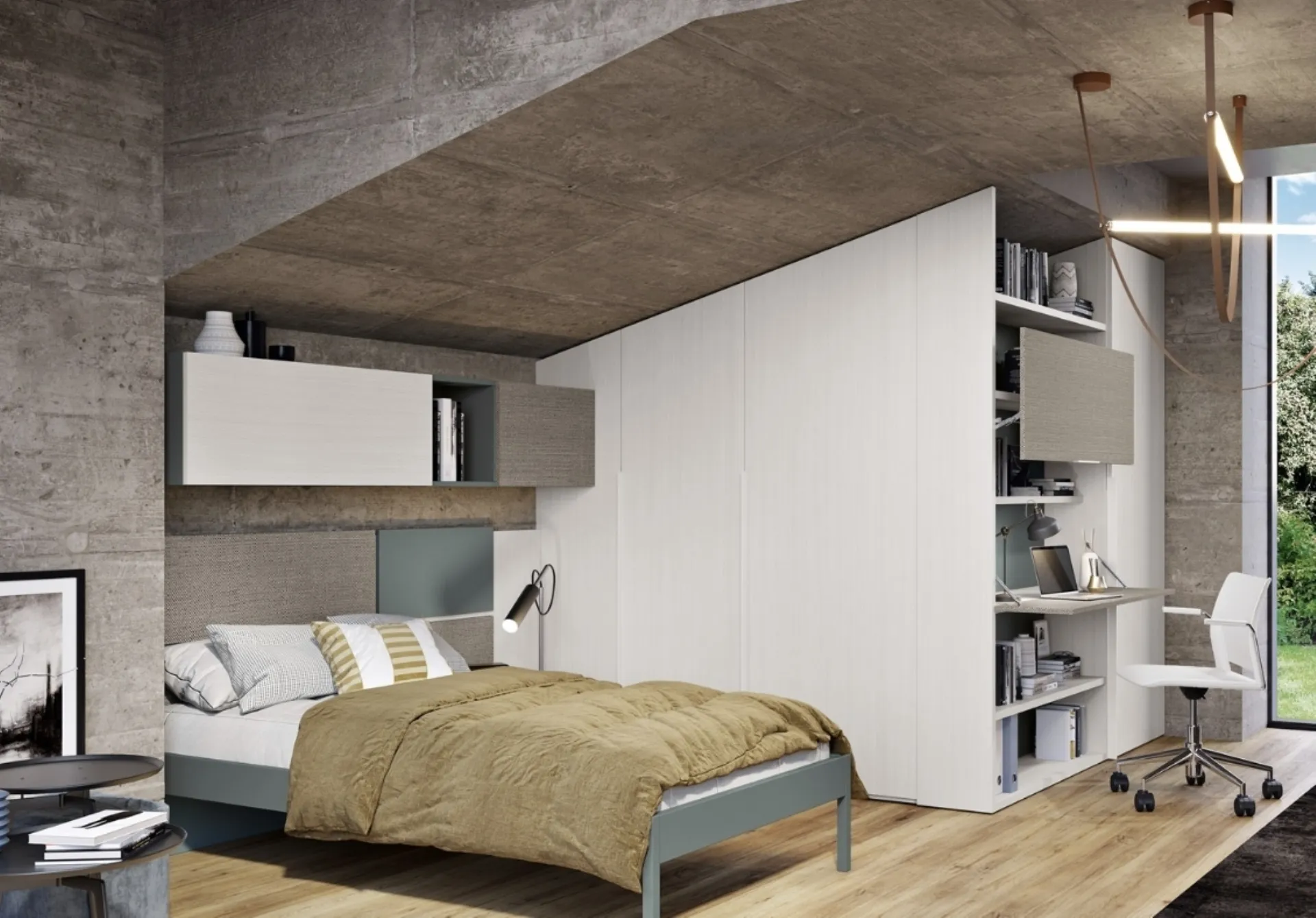 Con questa cameretta Cameretta 108 Ferrimobili, tra le soluzioni componibili, potrai progettare stanze moderne per ragazzi.