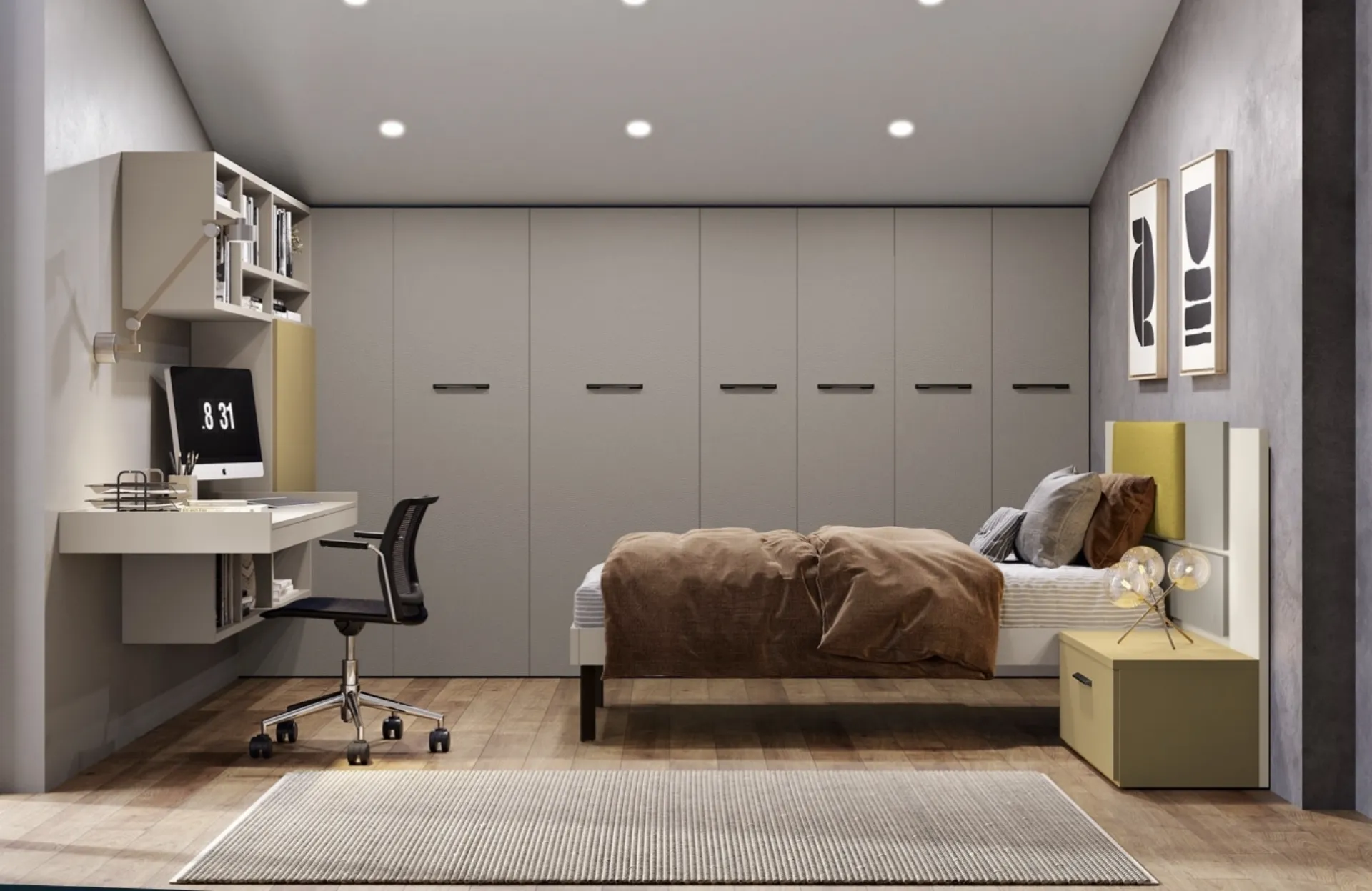 Arreda stanzette moderne con le Camerette componibili Ferrimobili! Il modello Cameretta 114 in melaminico è per ragazzi.