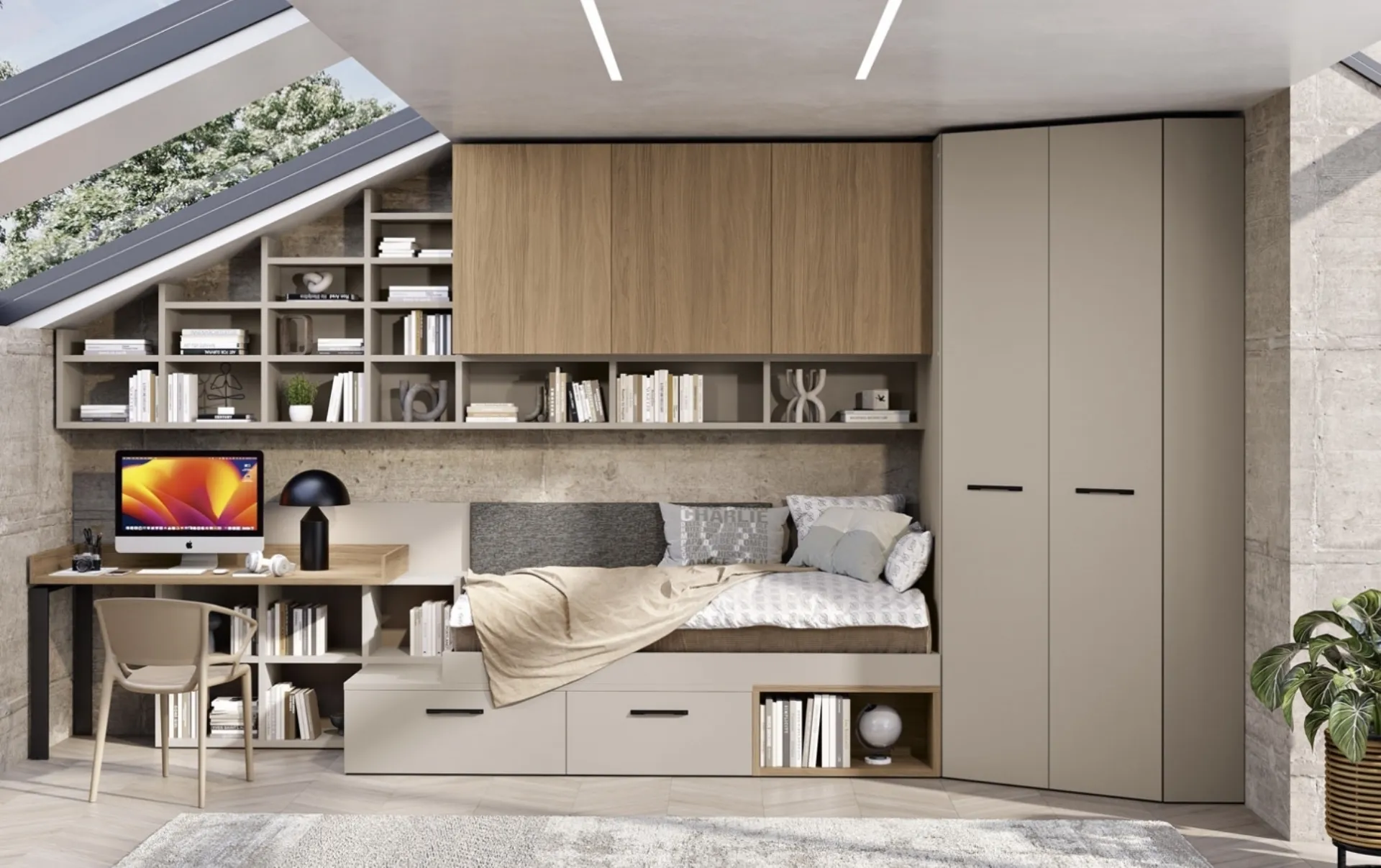 Camerette su misura per ragazzi: scopri il modello in melaminico Cameretta 117 di Ferrimobili per stanzette moderne.