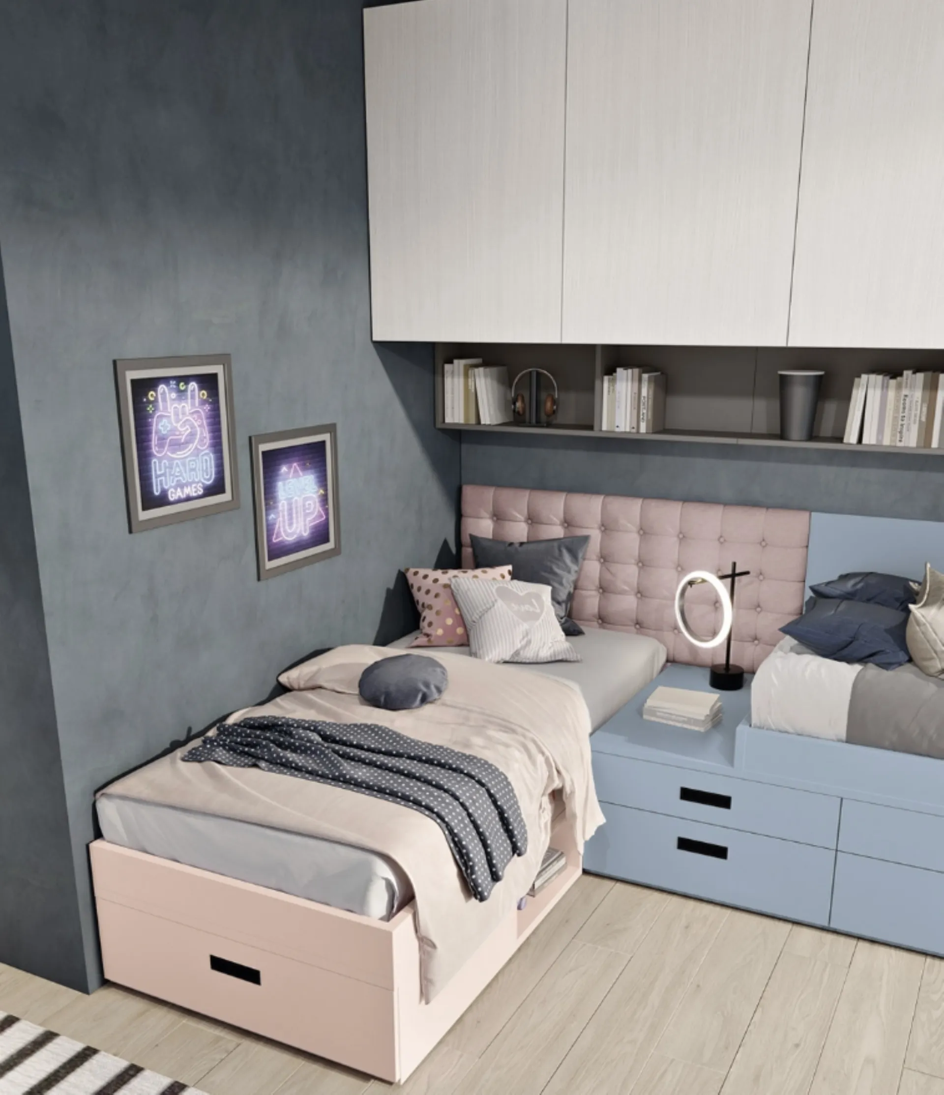 Arreda stanzette moderne con le Camerette a ponte Ferrimobili! Il modello Cameretta 131 in melaminico è per ragazzi.