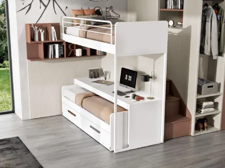 Arreda stanzette moderne con le Camerette a ponte Ferrimobili! Il modello Cameretta per Ragazze 605 in laccato opaco è per ragazzi.