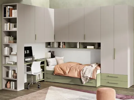 Con una composizione arredativa Ferrimobili, potrai completare con funzionalità e design l'ambiente nel quale i tuoi figli passano gli anni importanti della vita. Ferrimobili soddisfa il gusto dei piccoli e le richieste degli adulti con le sue Camerette moderne a ponte, ideali per esigenze di ogni tipo. Tonalità di tendenza e progetti articolati ad hoc caratterizzano le più originali proposte del rinomato brand che proponiamo in negozio. Vieni in negozio e potrai vedere dal vivo tutte le più originali composizioni d'arredo a ponte moderne di Ferrimobili per i più giovani. La Cameretta per Ragazze 620 a ponte di Ferrimobili in laccato opaco è un universo complesso da decorare attentamente, mixando vari accessori su misura.