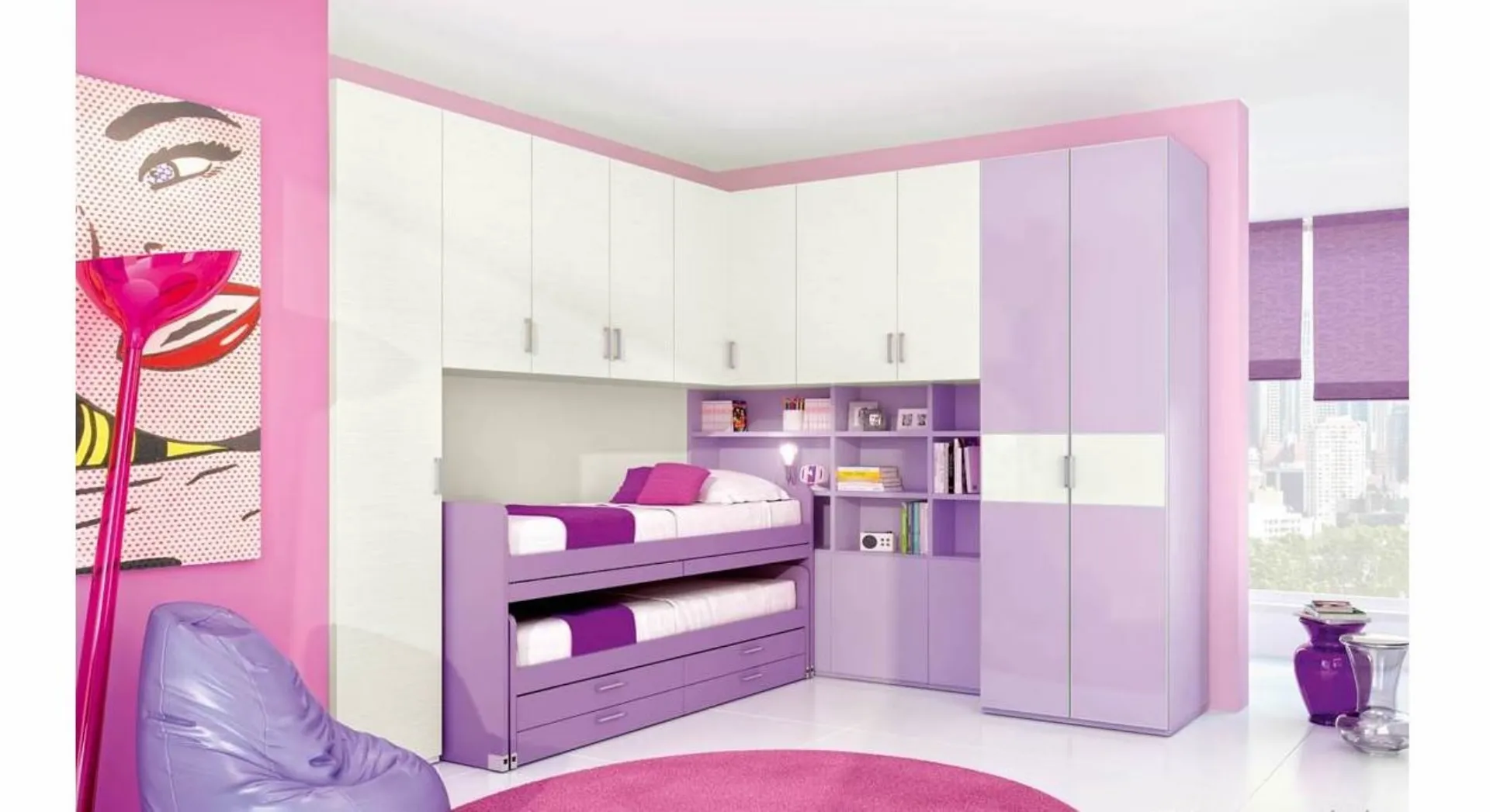 Camerette a ponte per ragazzi: scopri il modello in laccato opaco Cameretta per Ragazze 620 di Ferrimobili per stanzette moderne.
