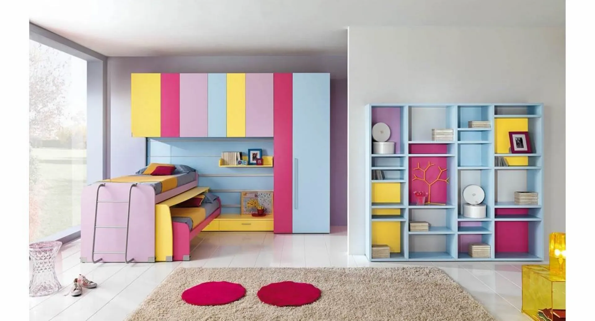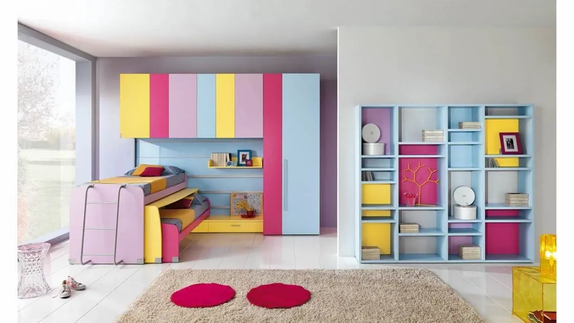 Arreda stanzette moderne con le Camerette salvaspazio Ferrimobili! Il modello Cameretta per Ragazze 638 in laccato opaco è per ragazzi.