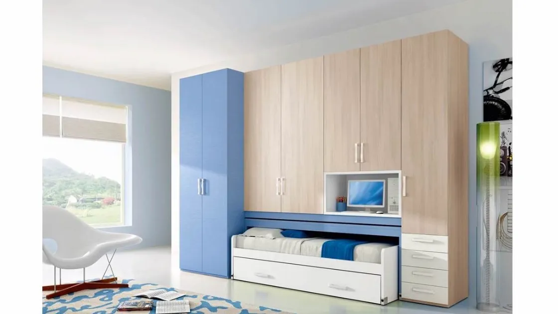 Arreda stanzette moderne con le Camerette salvaspazio Ferrimobili! Il modello Cameretta per Ragazzi 608 in legno è per ragazzi.