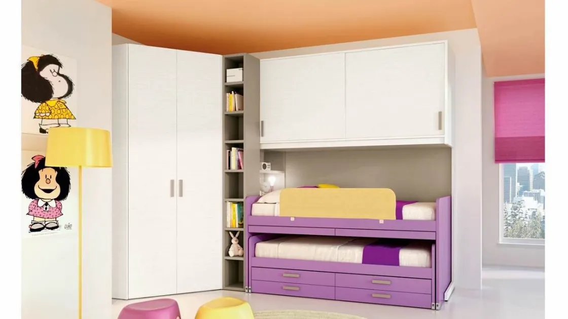 Camerette a ponte per ragazzi: scopri il modello in laccato opaco Cameretta per Ragazzi 622 di Ferrimobili per stanzette moderne.