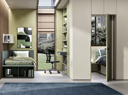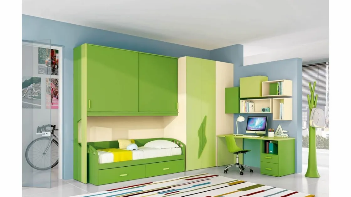 Camerette a ponte per ragazzi: scopri il modello in laccato opaco Cameretta per Ragazzi 631 di Ferrimobili per stanzette moderne.