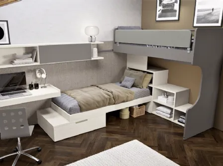 Camerette a ponte per bambine: scopri il modello in laccato opaco Cameretta per Ragazzi 640 di Ferrimobili per stanzette moderne.