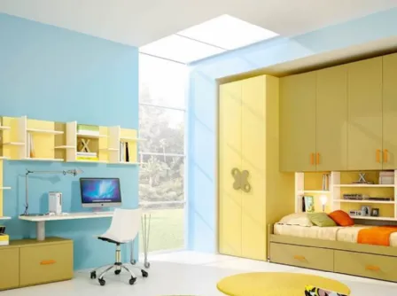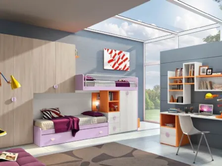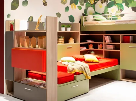 Con questa cameretta Composizione 01A Tomasella, tra le soluzioni componibili, potrai ammobiliare stanze moderne per ragazzi.