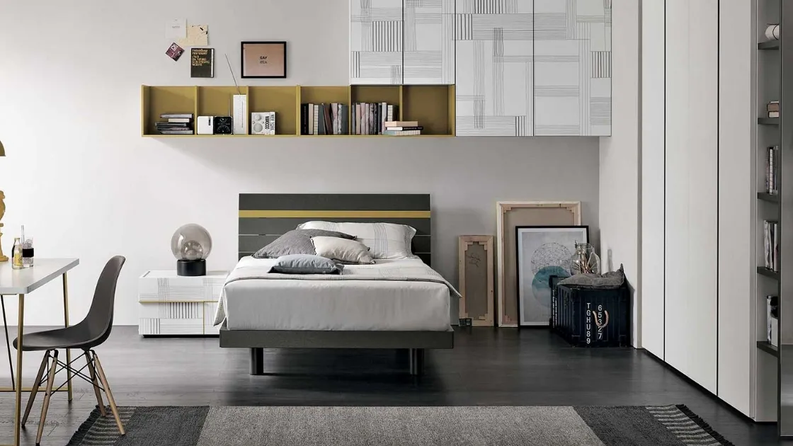 Arreda stanzette moderne con le Camerette componibili Tomasella! Il modello Composizione 06 in laccato opaco è per ragazzi.