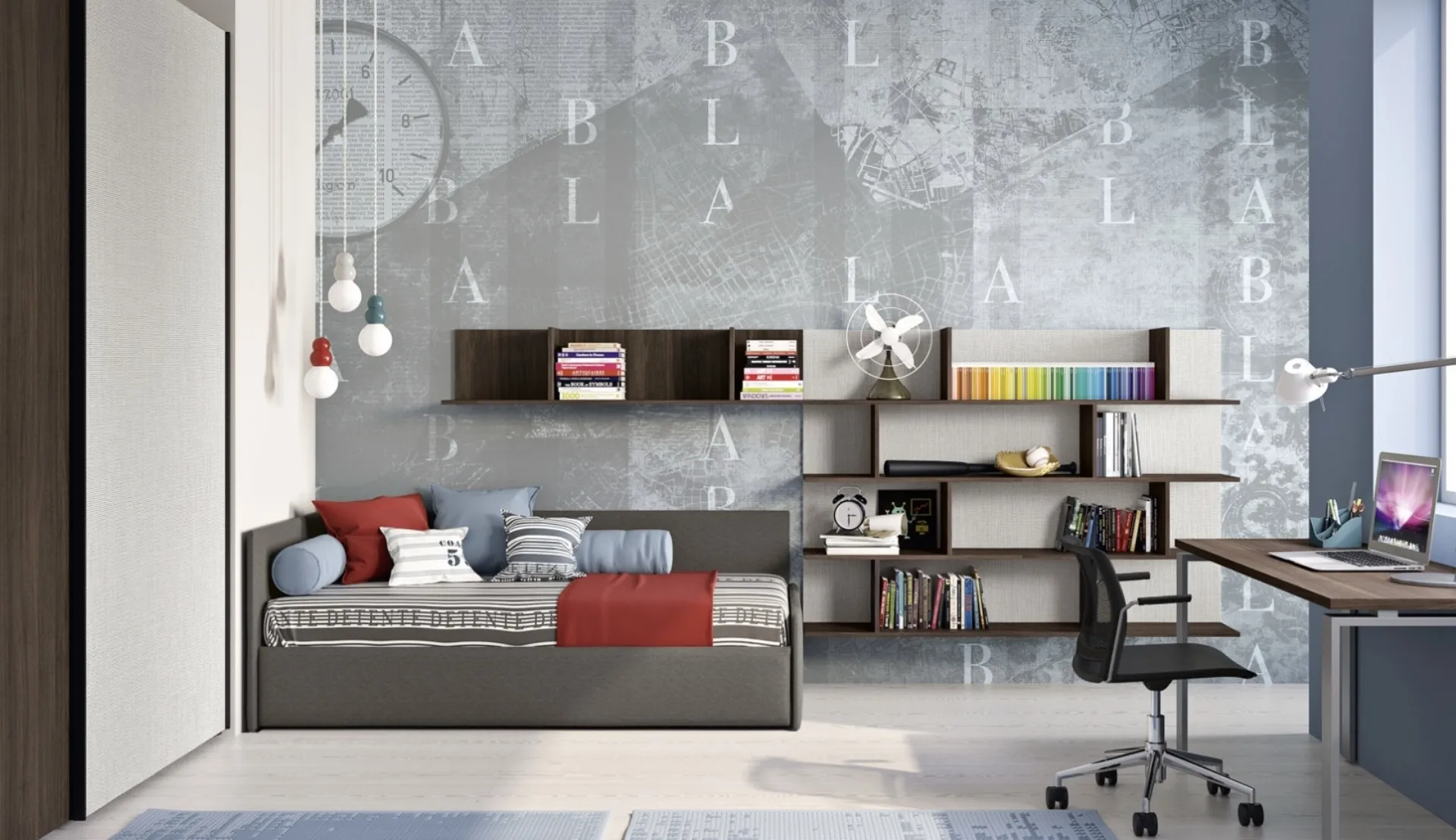 Clicca e ottieni informazioni sulla cameretta per ragazzi Cameretta moodbook 207! Le Camerette componibili Ferrimobili ti attendono.