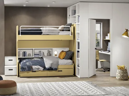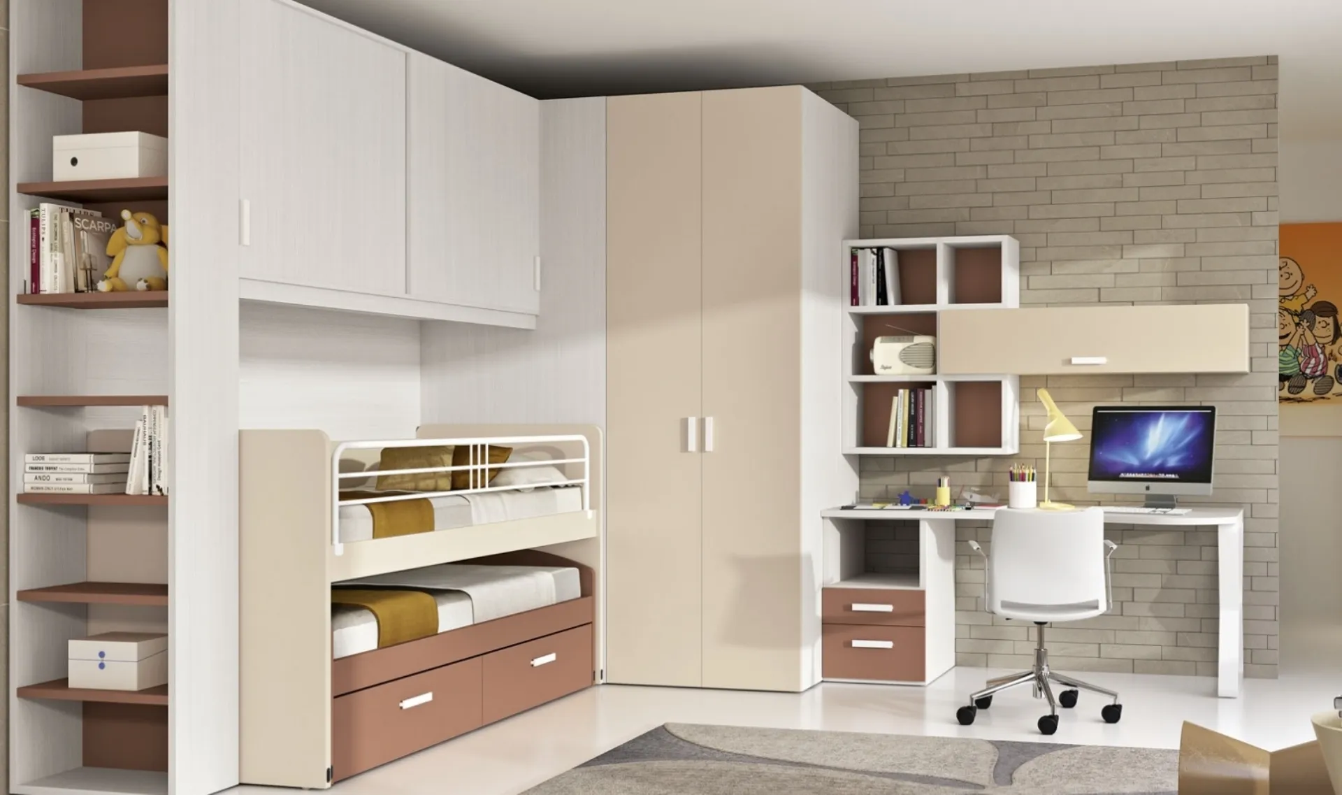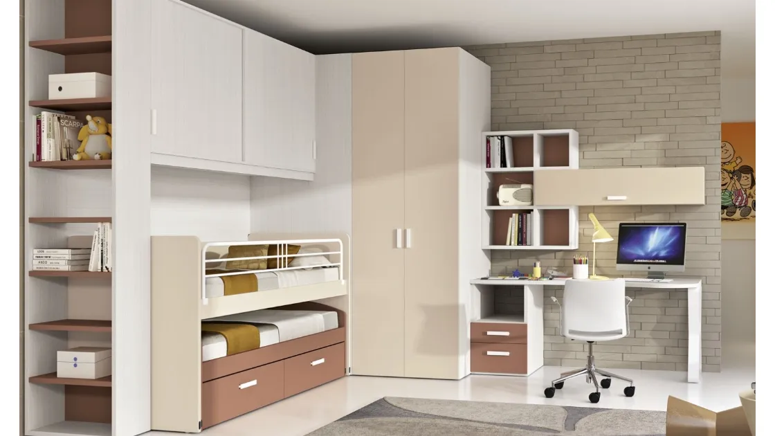 Camerette componibili per ragazzi: scopri il modello in laccato opaco Cameretta moodbook 216 di Ferrimobili per stanzette moderne.