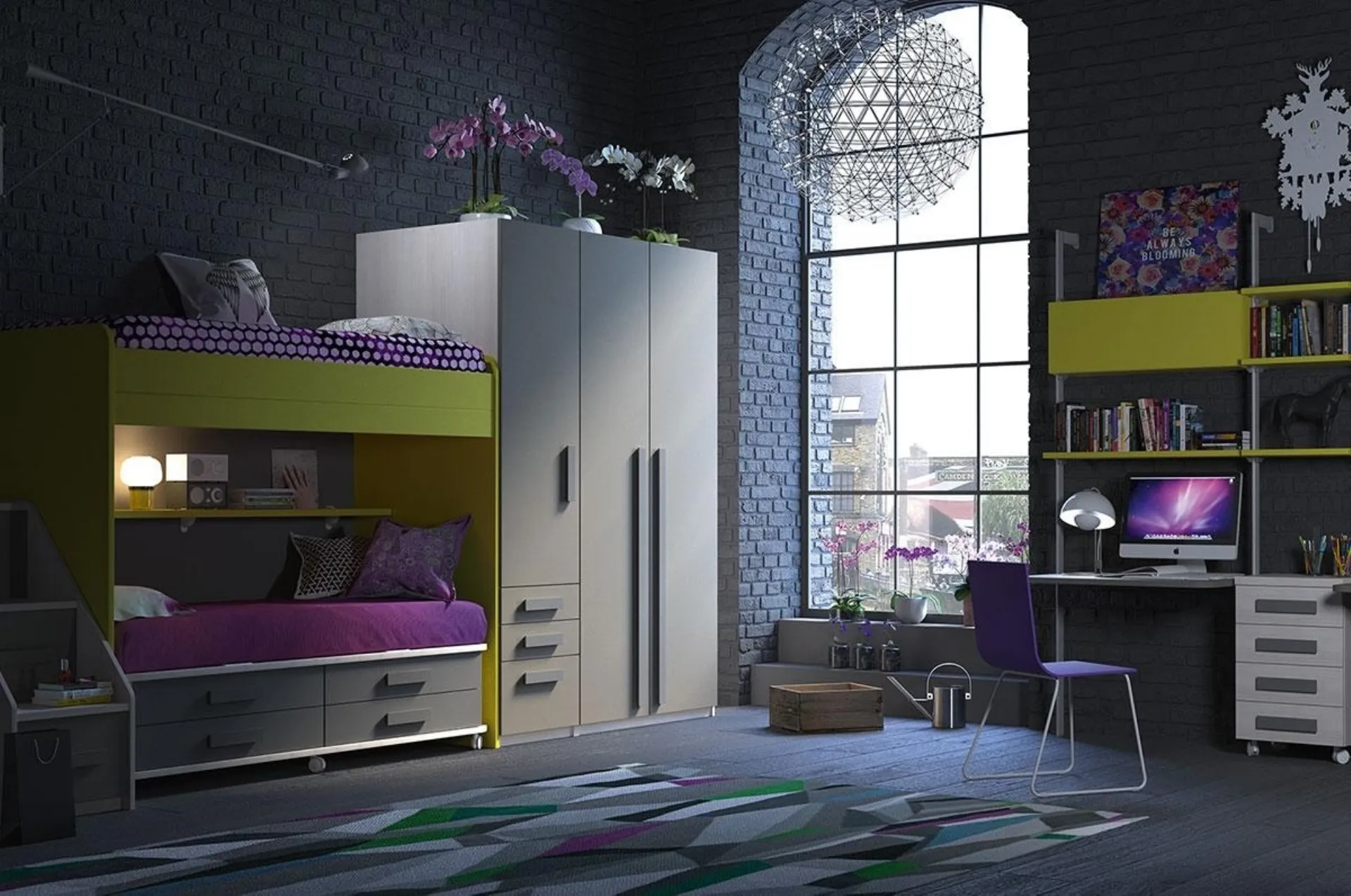 Arreda stanzette moderne con le Camerette con letti a castello Imamobili! Il modello Cameretta Chiara e Olivia in melaminico è per bambine.