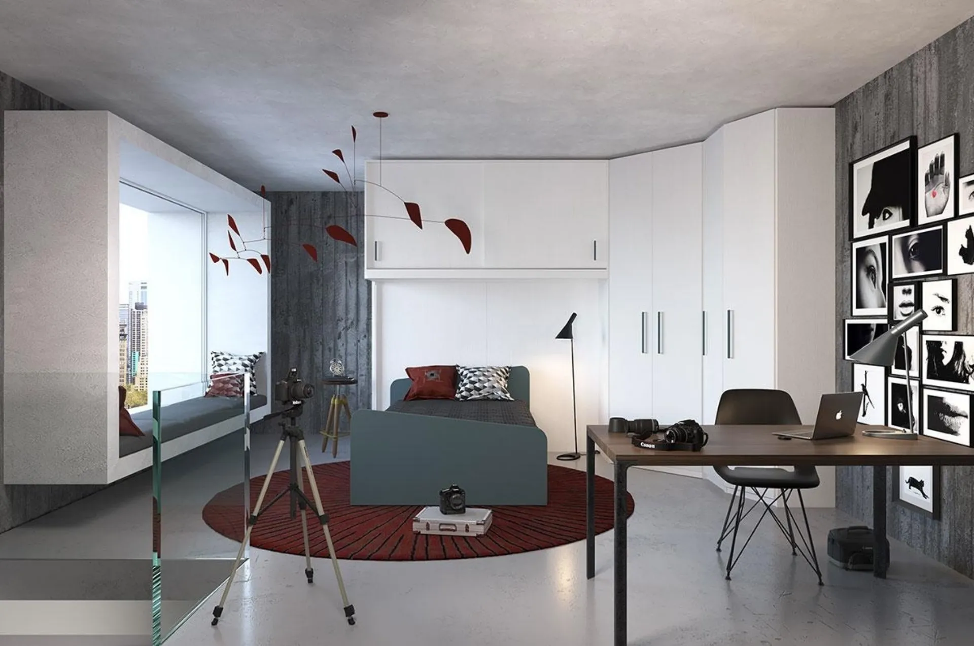 Arreda stanzette moderne con le Camerette a ponte Imamobili! Il modello Cameretta Matteo in melaminico è per ragazzi.