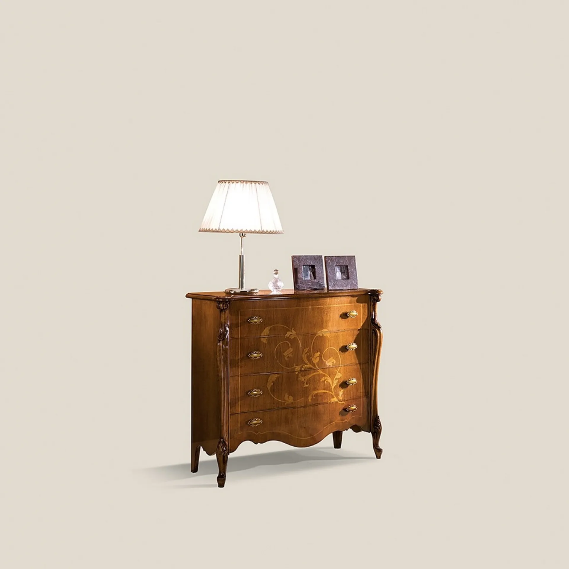 La zona del riposo include anche i Comodini: contenitori strategici che permettono di sistemare piccole cose e contare su piani di appoggio multiuso. Comò Passioni 5405 EM15 di Tarocco Vaccari: contattaci e ottieni informazioni sulle nostre proposte d'arredo e arreda la camera come l'avevi immaginata. Con i nostri gruppi notte classici della firma Tarocco Vaccari, leader dell’Arredamento Casa per la zona del riposo, potrai ricreare la camera che hai sempre desiderato. Valorizza i tuoi spazi scegliendo composizioni di pezzi coordinati o ricrea originali abbinamenti di stile e cromie per merito del catalogo di mobili e oggetti accessori per la zona del riposo che proponiamo, come il modello in legno presente in foto, anche realizzabili su misura.