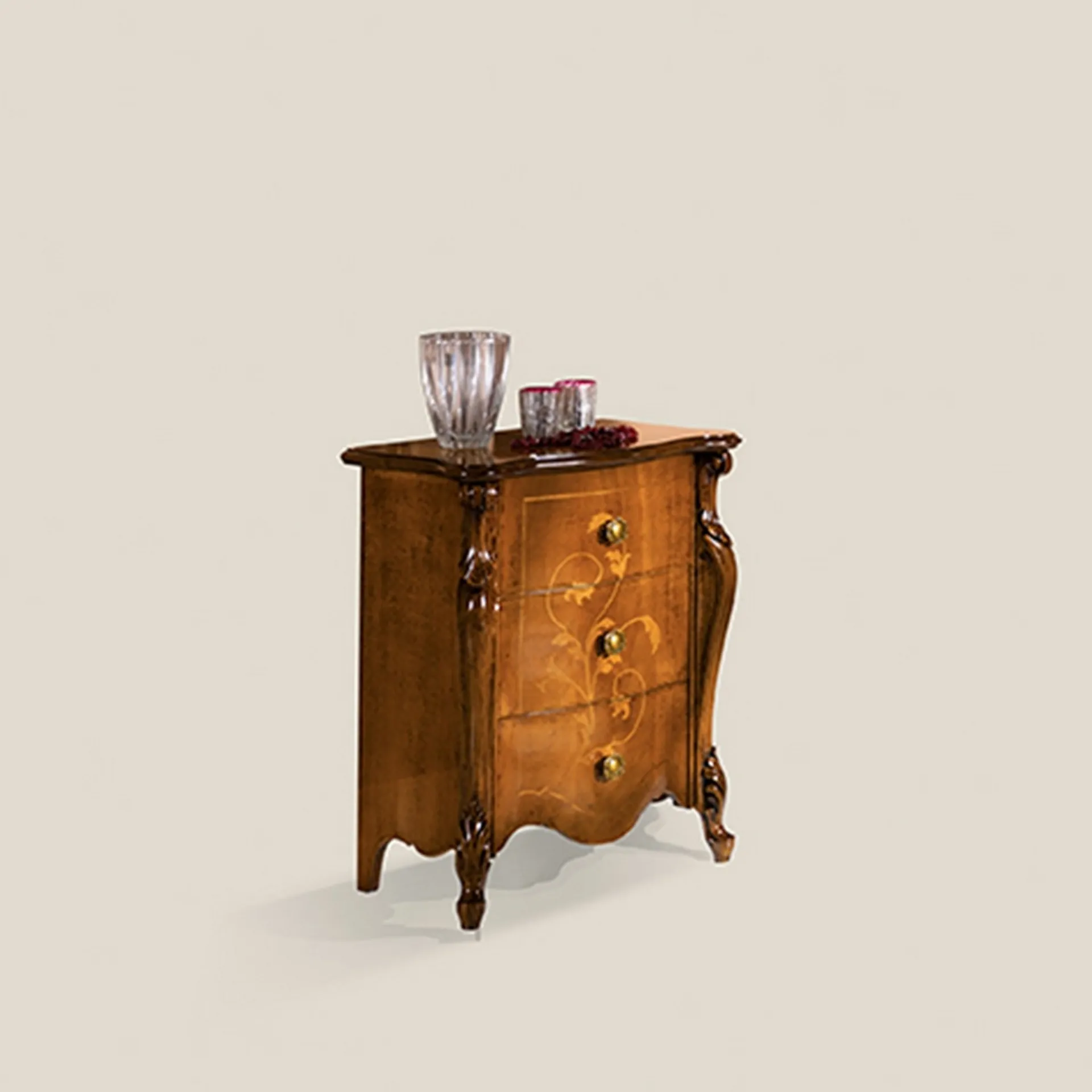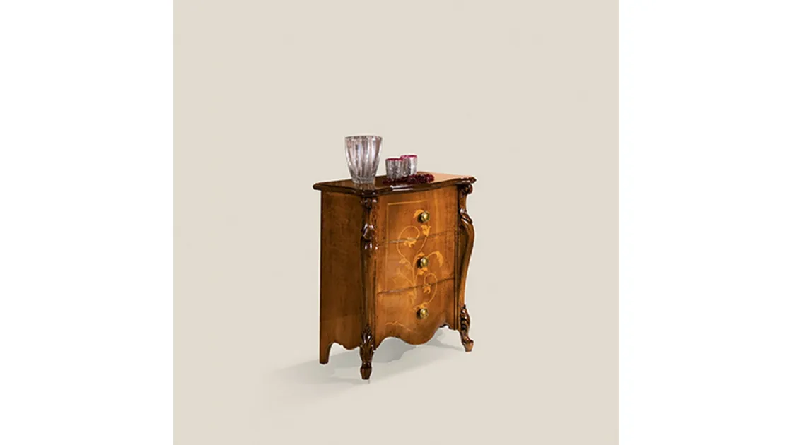 Scopri Comodini classici e cassettiere Tarocco Vaccari! Il modello Passioni 5406 EM16 realizzato in legno è la soluzione ottimale.
