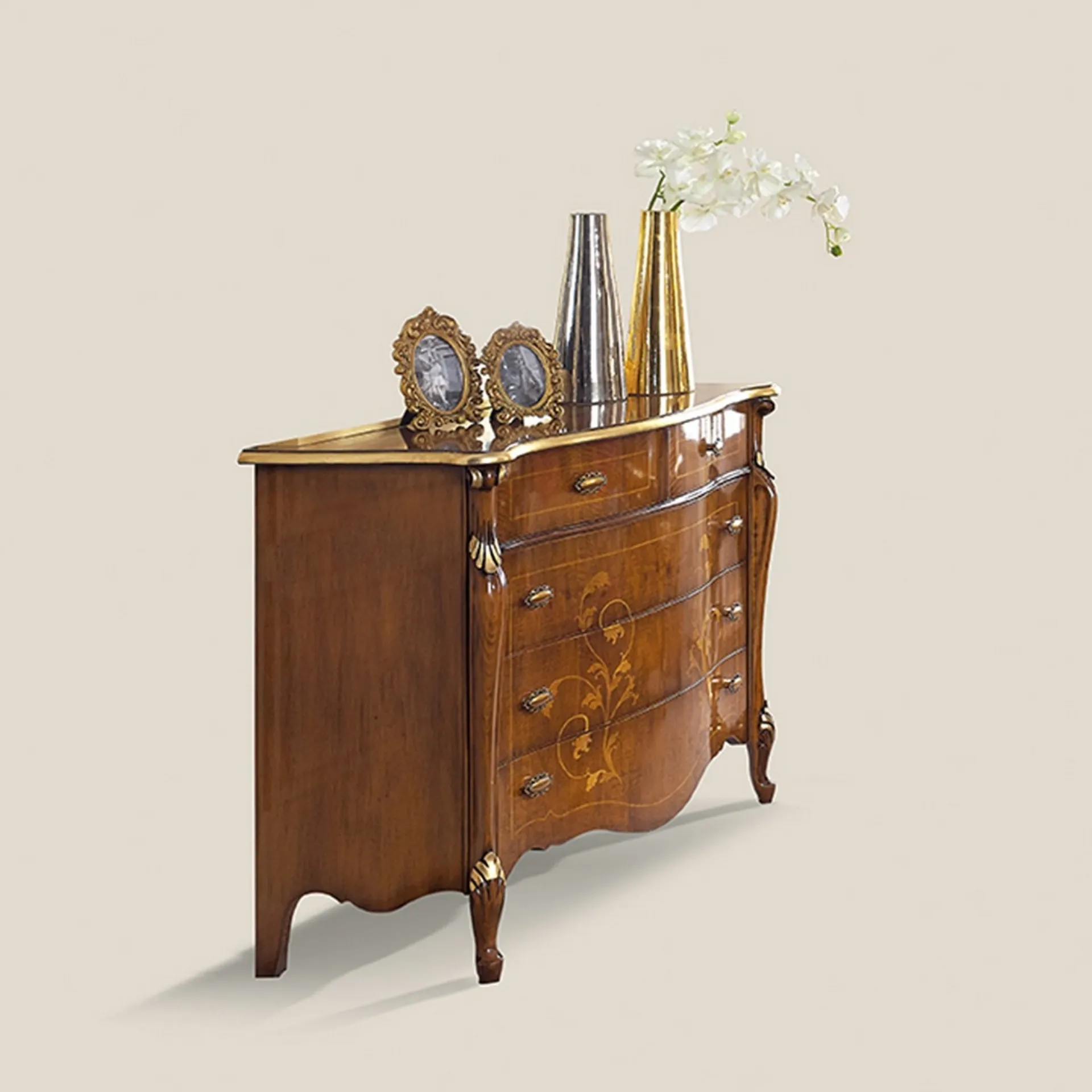 In negozio ti attende una ricca gamma di mobili e oggetti accessori classici del noto e rinomato marchio, leader nella produzione di Arredamento Casa per la zona notte. Il Comò Passioni 5430 EM27 di Tarocco Vaccari è una delle più belle soluzioni capaci di aggiungere un tocco di stile in più alla zona notte, con l'utilizzo di materie eccellenti. I Comodini, comò e gruppi notte possono essere abbinati al letto e al guardaroba o possono essere in voluto contrasto con essi: l'acquisto si baserà sulle oggettive possibilità di spazio e sulla ricerca di un ben dosato effeto finale.