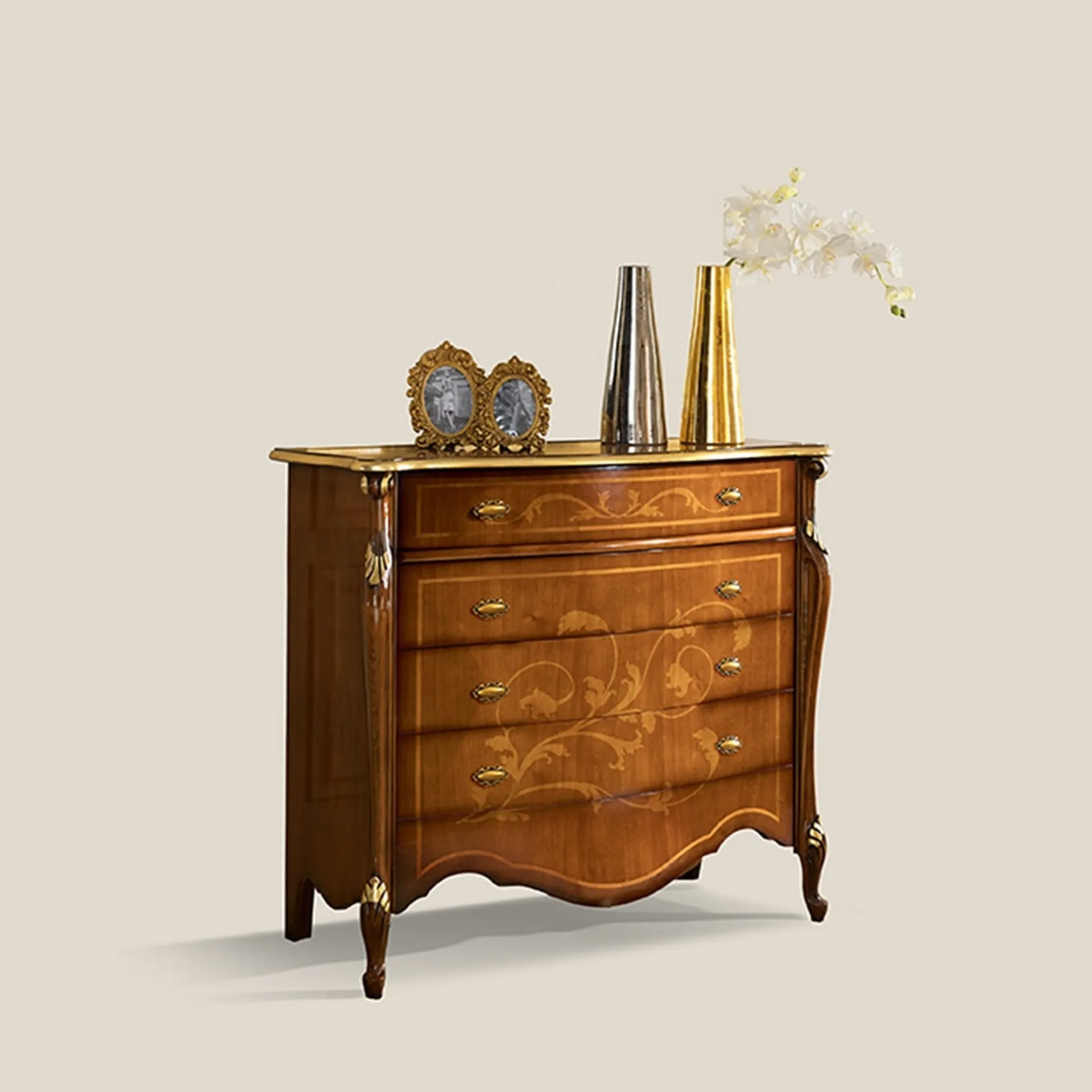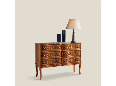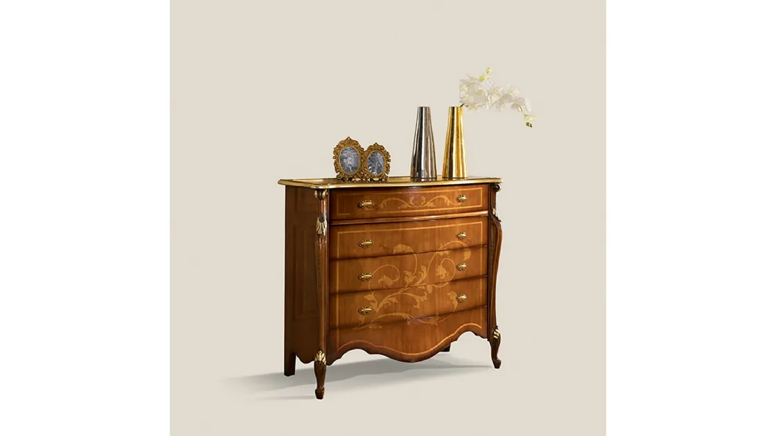 Vuoi allestire la zona notte con Comodini e cassettiere di Tarocco Vaccari? Ecco qui il modello Passioni 5450 EM27 in legno per spazi classici.