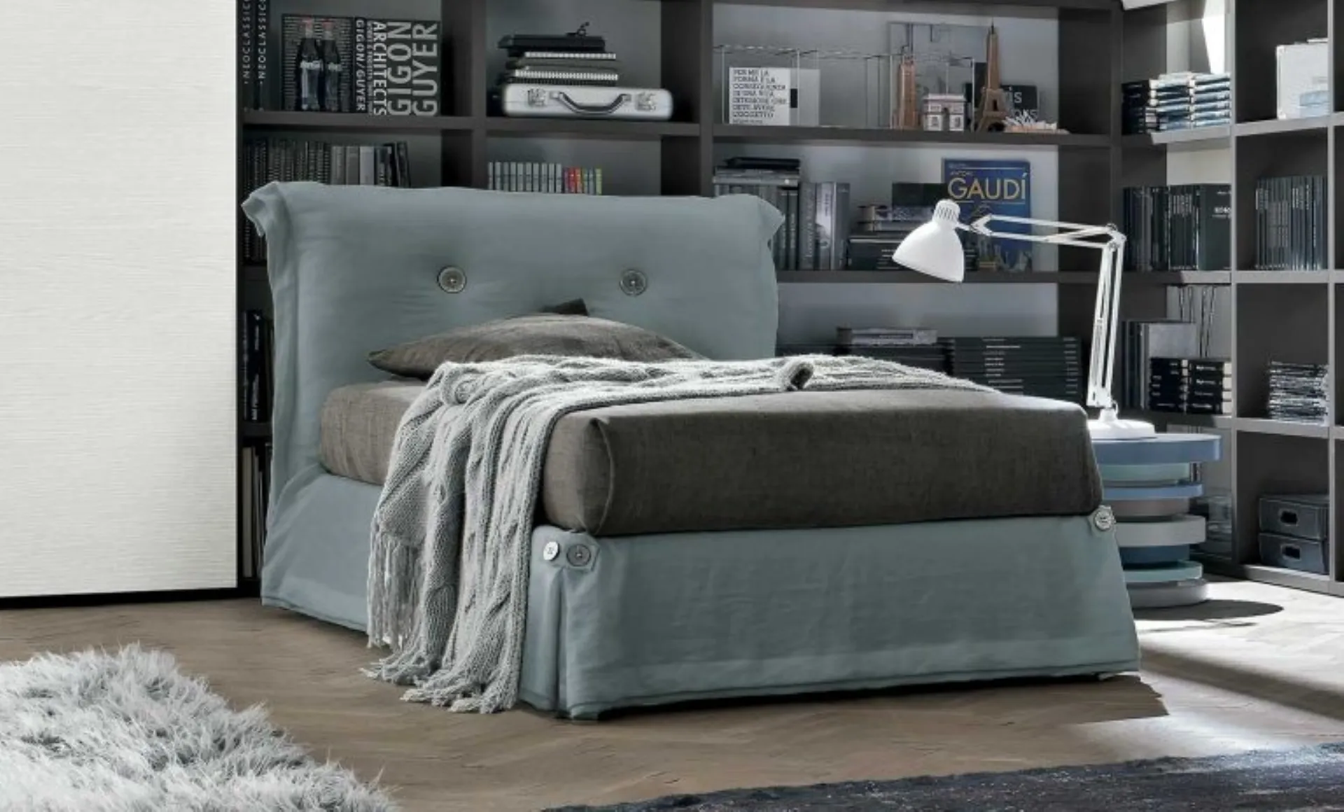 La cameretta dei più piccoli è necessario che preveda tutti gli arredi per garantire un interno ideale per i bambini, in cui collocheremo i letti moderni come questo. Scopri di più sul modello in tessuto nell'immagine: contattaci per qualsiasi specifica compilando il form in basso. Ti serve un letto singolo Tomasella per completare la cameretta? Ti presentiamo il Letto singolo Amami di Tomasella che appartiene alla nostra collezione di letti imbottiti del marchio. Un prodotto che osserva le norme di sicurezza indispensabili per arredare l'ambiente dei piccoli.