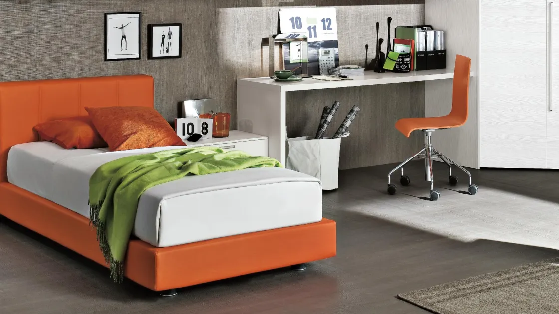 Se desideri mobili e oggetti accessori moderni, il letto singolo nell'immagine fa al caso tuo: #appartiene alla@# nostra serie di letti singoli imbottiti. Il Letto singolo Club di Tomasella nell'immagine è ideale per completare al meglio la cameretta dei tuoi figli, abbinandosi in modo ottimale con armadi e comodini, accessori e quant'altro. Questo è uno tra i prodotti più inediti del marchio Tomasella, garanzia di durata negli anni, qualità dei materiali e un design unico. Contattaci e ottieni informazioni sulla nostra serie di Letti singoli in ecopelle: arreda la cameretta come l'avevi sognata.