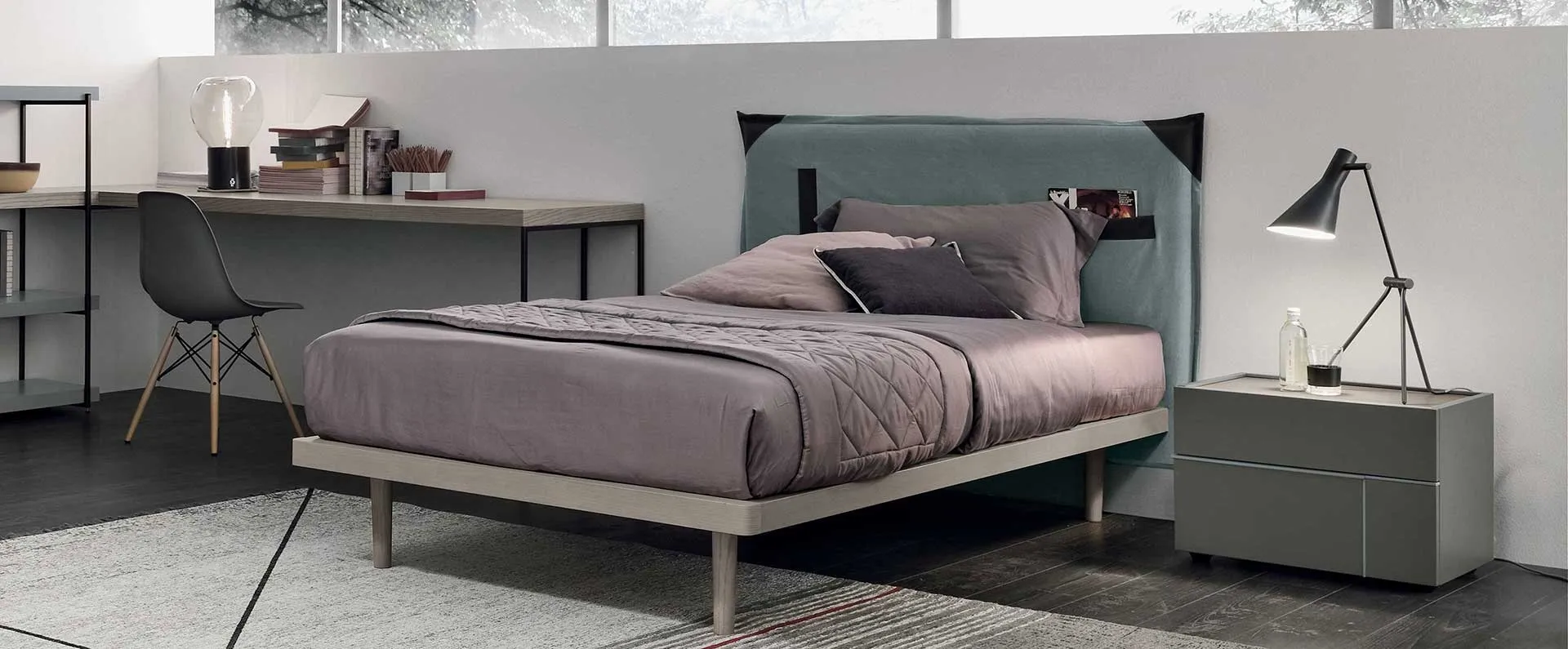 Se sei alla ricerca di letti singoli imbottiti, ecco qui il modello Tasca in tessuto per completare la camera dei più piccoli.