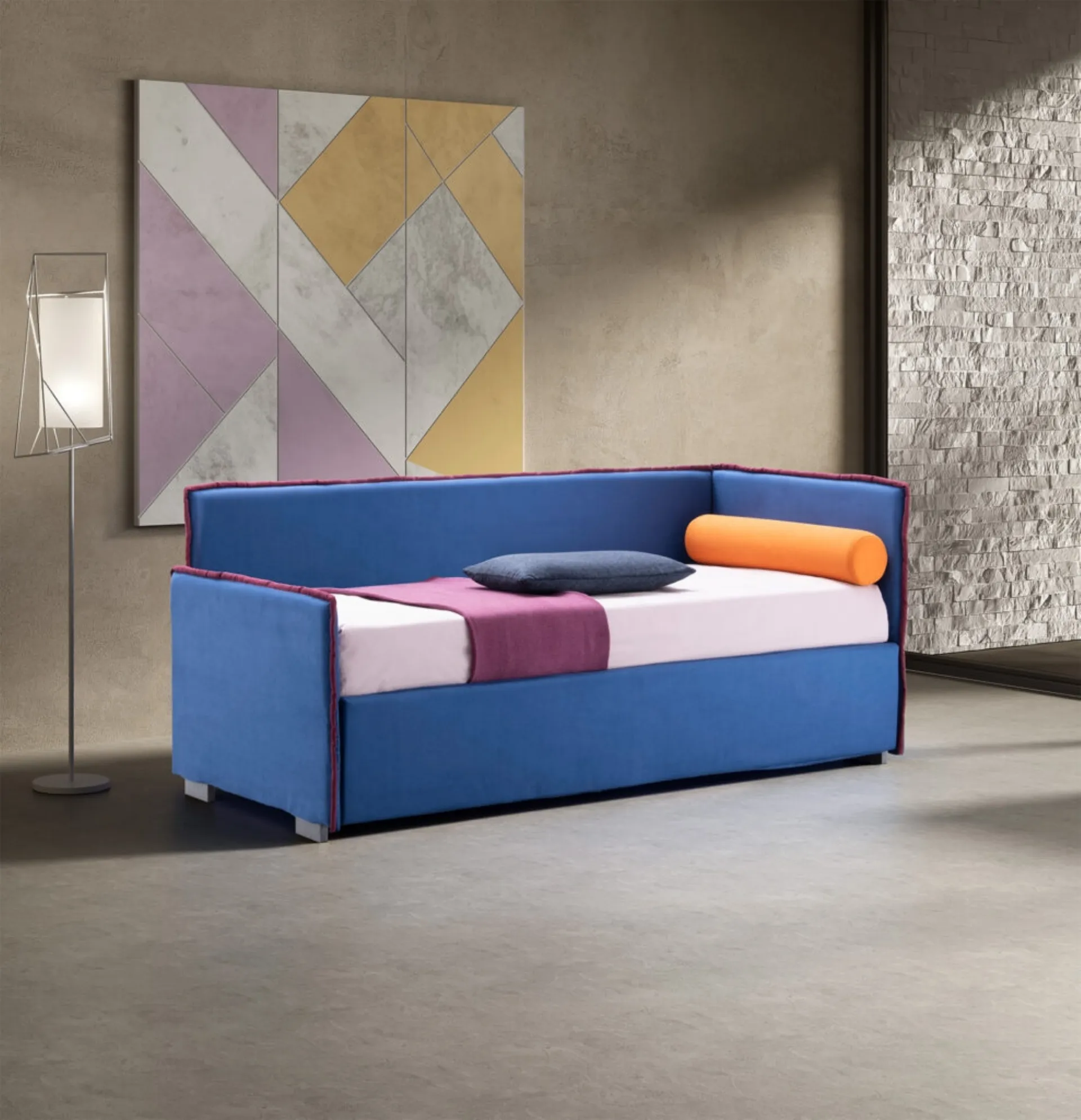 Materiali di qualità e pitture atossiche contraddistinguono le proposte del marchio: se la stanza ha misure ridotte, sono diverse le soluzioni disponibili, sempre capaci di congiungere ergonomia e sicurezza. Una ricca gamma di letti moderni in tessuto ti sta aspettando: il marchio Stilfar Italia propone svariate versioni di letto, che rispondono sempre alle necessità dei bimbi. I Letti singoli con contenitore per la stanza dei più piccoli disponibili in negozio risolvono ogni difficoltà di spazio e praticità, assicurando allo stesso tempo uno stile unico. Scopri di più sul Letto singolo Tramonto di Stilfar Italia nell'immagine: si presta a creare al meglio un ambiente ideale per i bambini, bello e ben organizzato, ideale per i tuoi bambini.