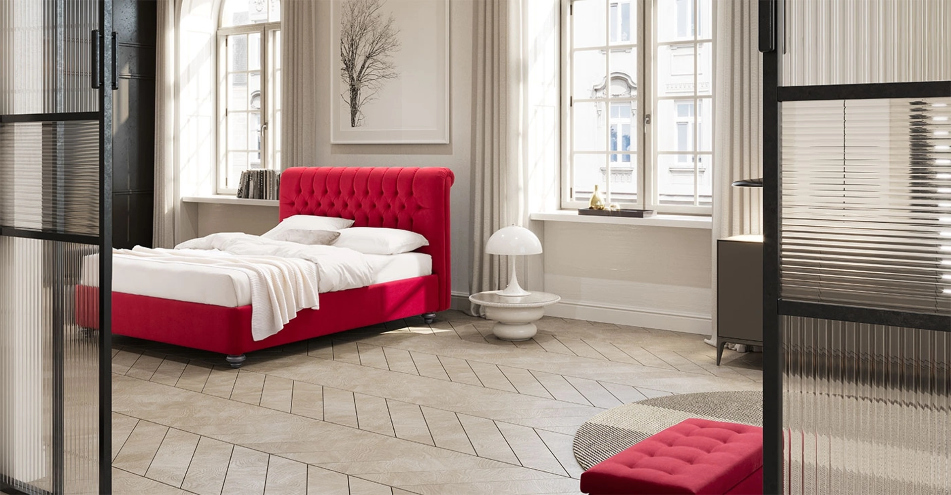 Scopri in negozio una ricca gamma di Letti imbottiti, mobili e oggetti accessori per la zona del riposo dei migliori brand. Se desideri ricreare un'ambientazione intima e rasserenante, il modello mostrato in foto fa per te: nella stanza del riposo dovrai ricreare un'ambientazione rasserenante, per farti ritemprare le energie psicofisiche tutte le notti. Se desideri allestire spazi classici, ti aspettiamo per illustrarti la nostra design di Arredamento Casa per realizzare il tuo progetto su misura. Durata delle finiture e grande comfort sono gli aspetti che distinguono tutti i prodotti dell'azienda, tra cui anche il letto in tessuto nella fotografia.
