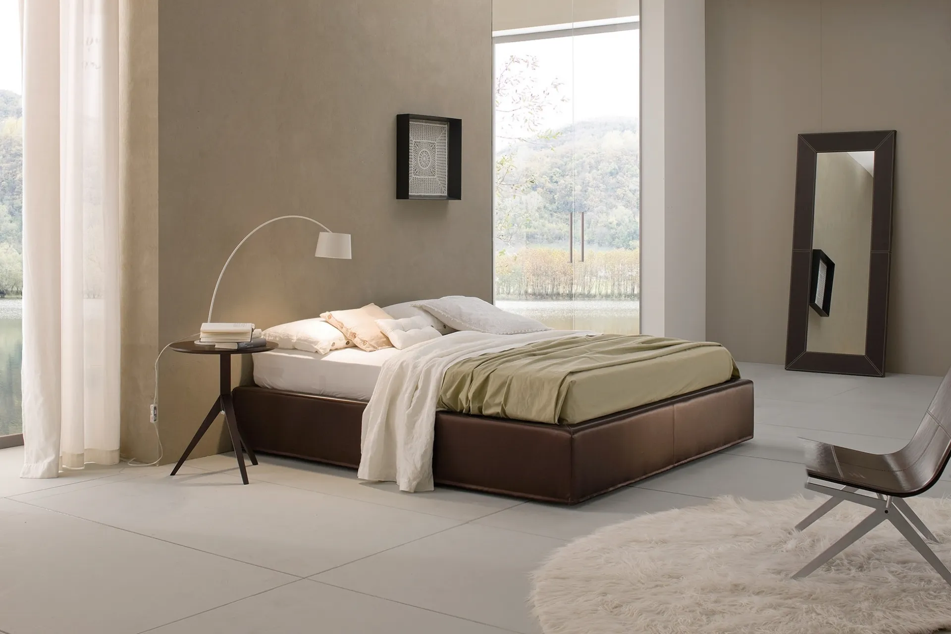 Il letto Sommier in ecopelle, tra i modelli con contenitore matrimoniali moderni di Fabbri Salotti, è perfetto per assicurarti il riposo migliore.