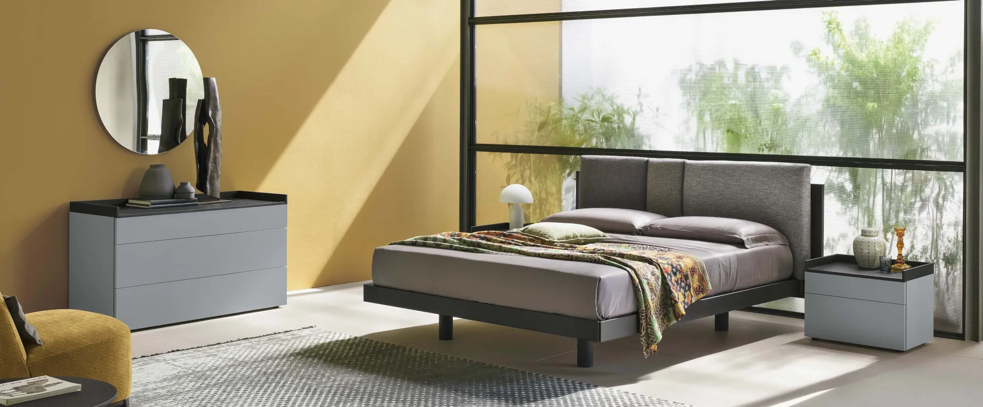 Il letto Nikki in tessuto, tra i modelli imbottiti matrimoniali moderni di Tomasella, è pensato per assicurarti il relax totale.