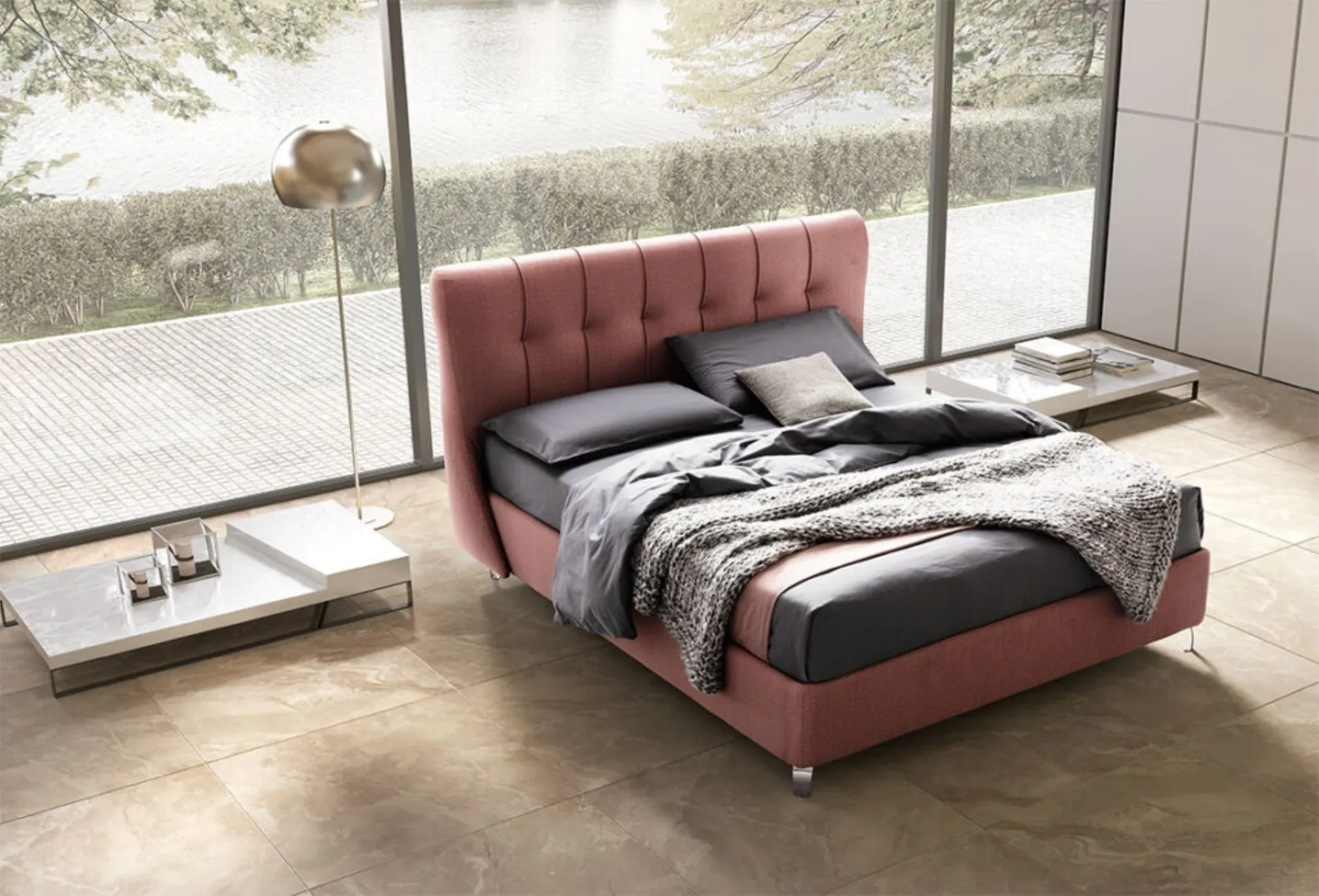 Se sei alla ricerca di letti matrimoniali imbottiti, ti presentiamo il modello Karina in tessuto per completare la camera da letto.