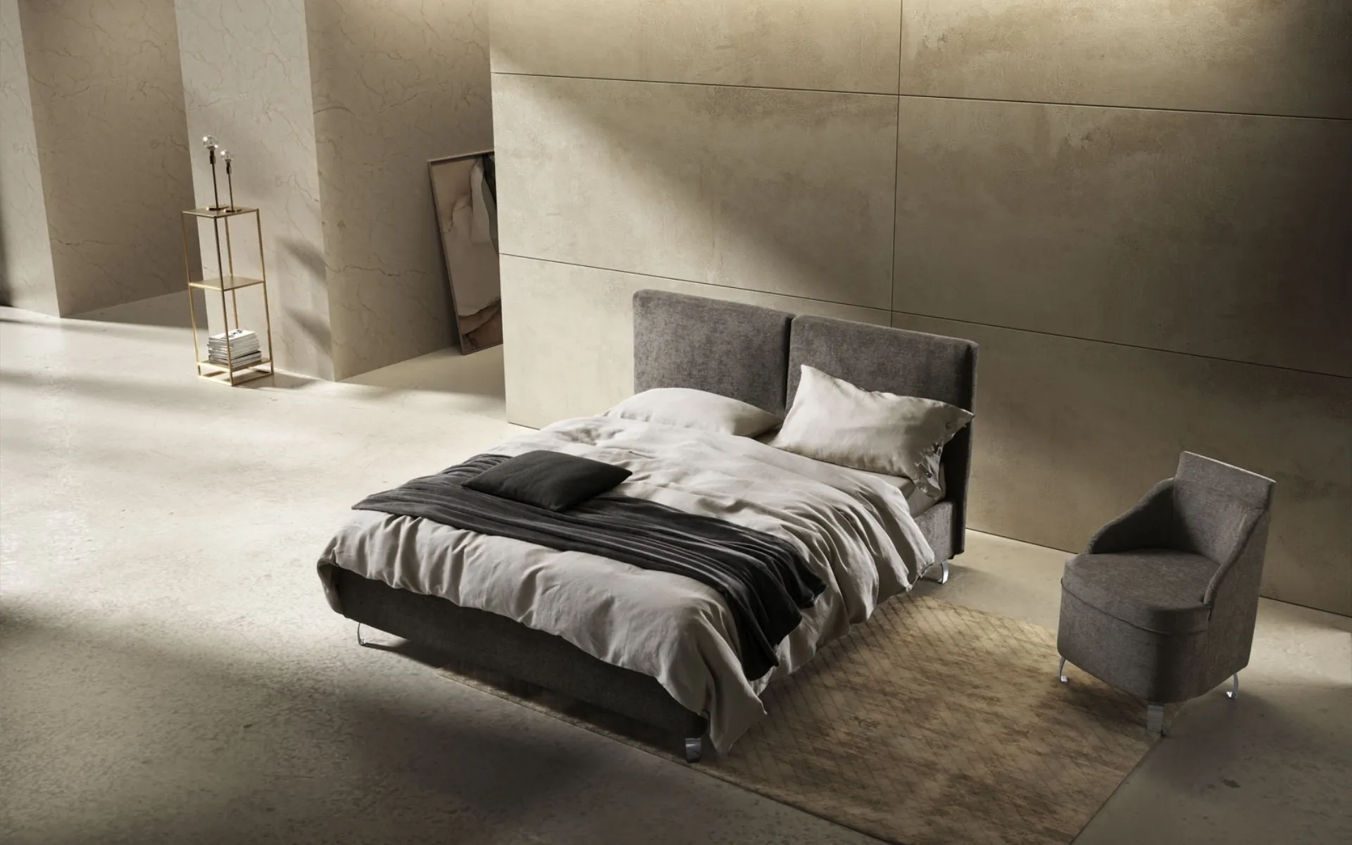 Se vuoi letti matrimoniali imbottiti, eccoti il modello Martina in tessuto per impreziosire la zona notte.