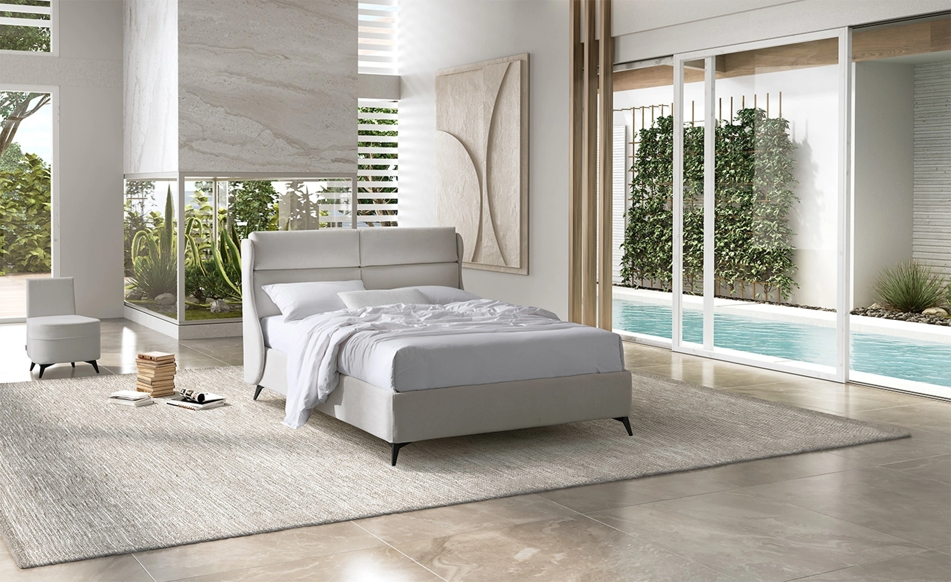 Se vuoi letti matrimoniali imbottiti, ecco qui il modello Segreto in tessuto per impreziosire la zona notte.