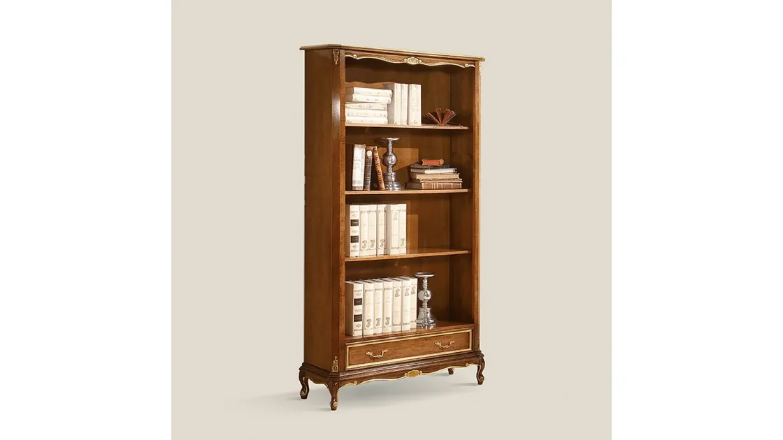 Finiture di pregio e forme decise: scopri la libreria Emozioni 5112 EM27 di Tarocco Vaccari tra le più originali Librerie classiche a muro.