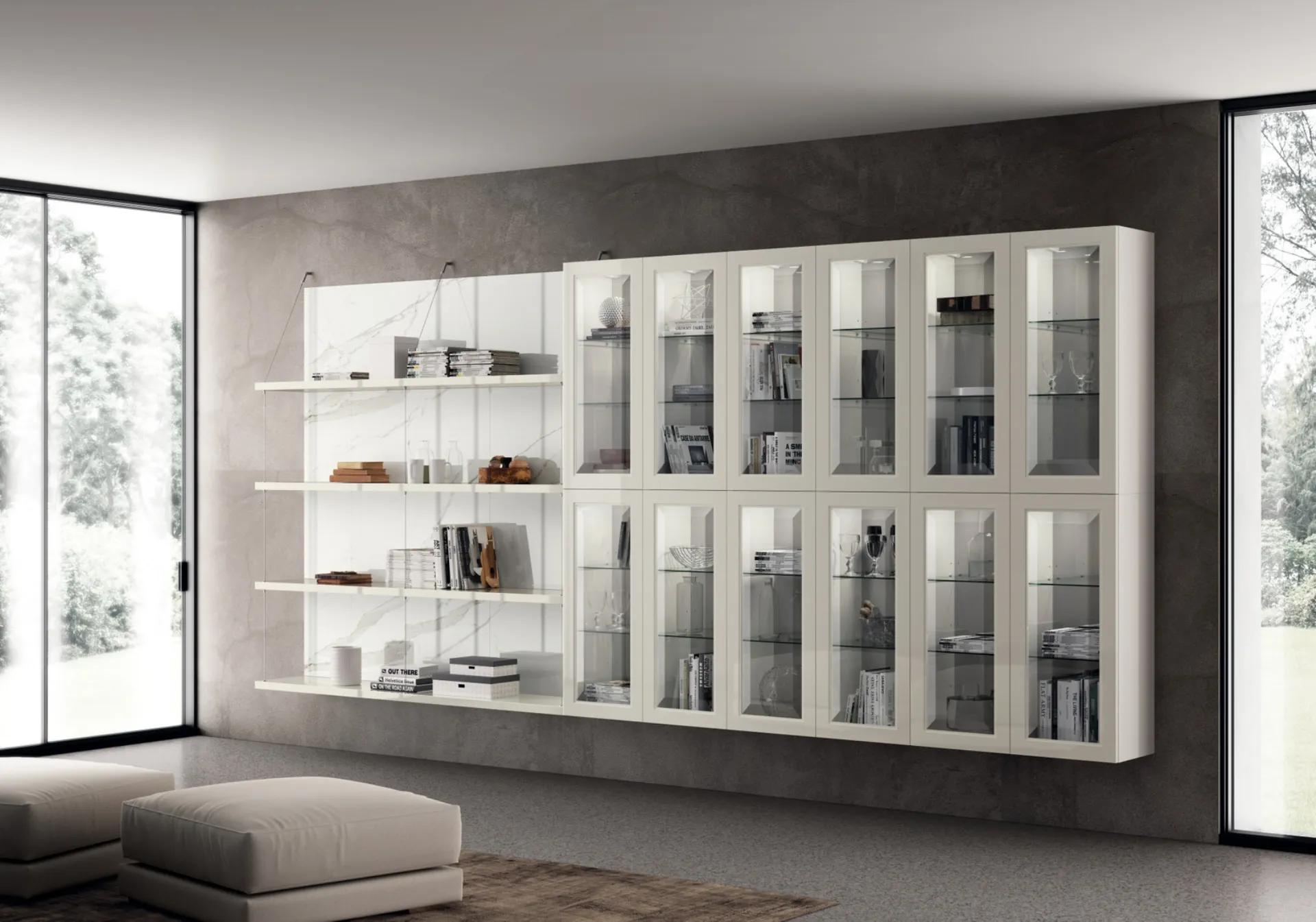 Clicca e scopri le Librerie sospese moderne! Il modello Living Exclusiva Bianco Prestige Scavolini saprà completare un soggiorno dinamico e operativo.