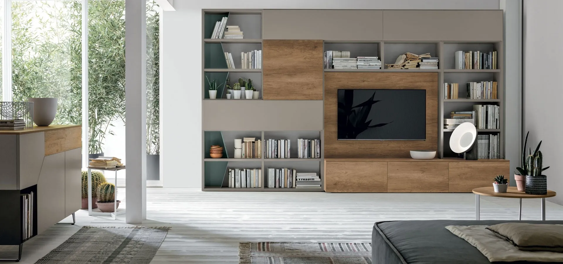 Librerie a muro davvero funzionali per stanze moderne: ottieni informazioni sul modello Atlante UNIT AT219 del marchio Tomasella!