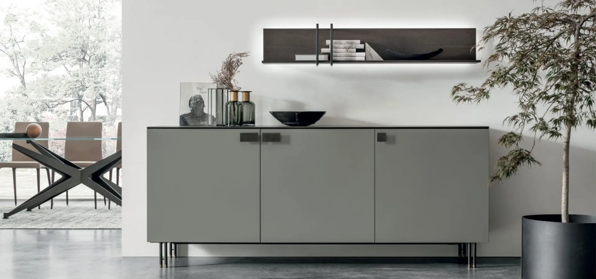 Arreda un soggiorno operativo e pratico con questa madia Basilea di Tomasella: scopri le più belle Madie in laccato opaco.