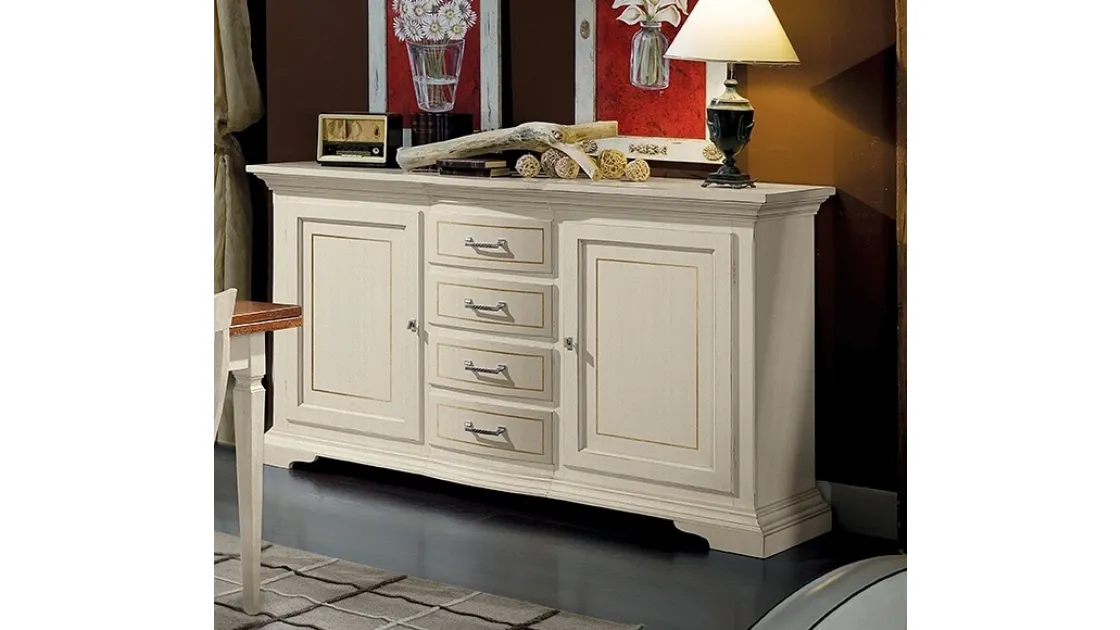 Clicca e scopri di più! Mobile soggiorno Giulia V1001 TV131 di Tarocco Vaccari in legno laccato: ti attende per completare le tue stanze classiche.